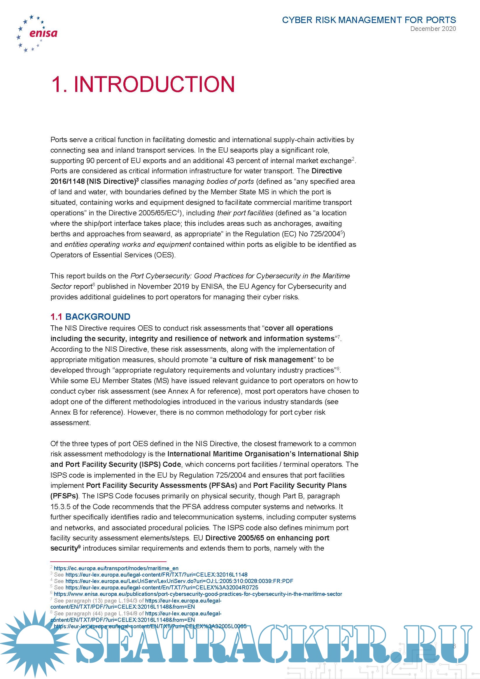 Year: 2020 Language: english Author: ENISA Genre: Guide Publisher: ENISA Format: PDF Quality: eBook Pages count: 57 Description: Guidelines - Cyber Risk Management in Port the European Union Agency for Cybersecurity (ENISA) released cybersecurity guidelines to help European port operators manage cyber risks amid digital transformation and increased regulations. ENISA’s new Guidelines - Cyber Risk Management for Ports was drafted in collaboration with several ports in EU Member States. The publication builds on ENISA’s 2019 Port Cybersecurity Report by providing actionable practices that speak to the current cybersecurity threats and changing digital landscape faced by Europe’s maritime sector. This report aims to provide port operators with good practices for cyber risk assessment that they can adapt to whatever risk assessment methodology they follow. In order to achieve this, this report introduces a four-phase approach to cyber risk management for port operators, which follows common risk management principles and is mapped to the steps of the risk assessment methodology that is laid out in the ISPS Code and relevant EU legislation for Port and Port Facility Security. For each of these phases, this report provides actionable guidelines to assist port operators in their efforts, lists common challenges associated with the performance of the relevant activities, good practices that can be readily adopted and customised by individual organisations and a mapping of the listed good practices for each phase with the respective challenges they address.