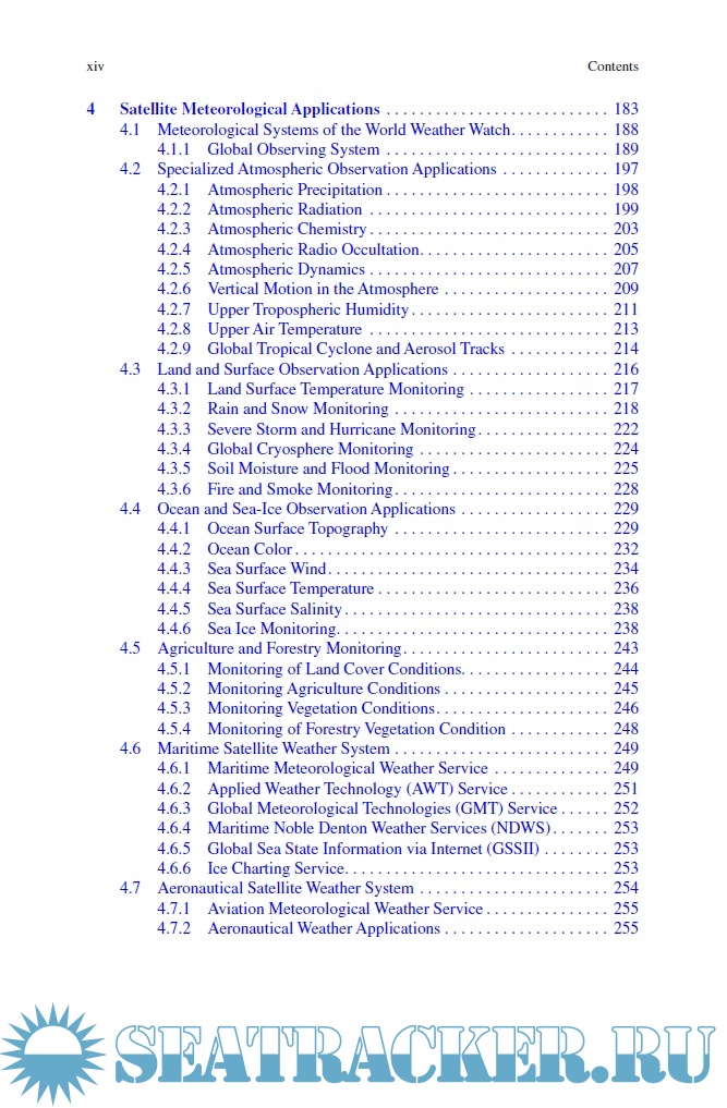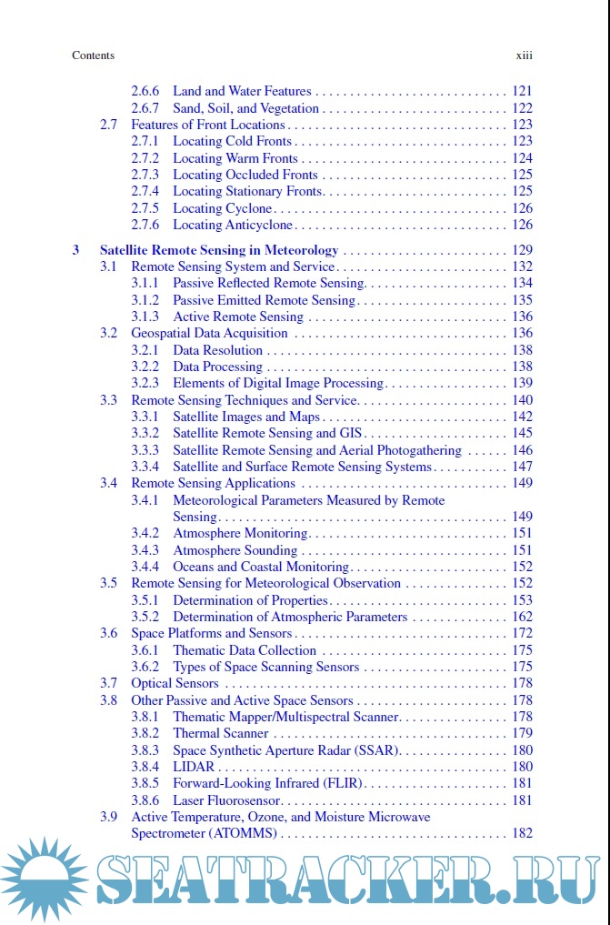 Description: The book presents the structure of space systems, functionality, media and applications for modern remote sensing, transmission systems, meteorological antennas, and transferring weather data from satellite to the ground infrastructures and users. The author describes techniques and different modes of satellite image interpretation, type of satellite imagery, spectral imaging properties, and enhancement of imaging technique, geo-location and calibration, atmospheric and surface phenomena. Several satellite meteorological applications are introduced including common satellite remote sensing applications, weather analysis, warnings and prediction, observation and measurements of meteorological variables, atmosphere and surface applications, ocean and coastal applications, and maritime and aviation satellite weather applications. The author also covers ground segment and user segment in detail. The final chapter covers the possible space integrations in meteorological and weather observation.