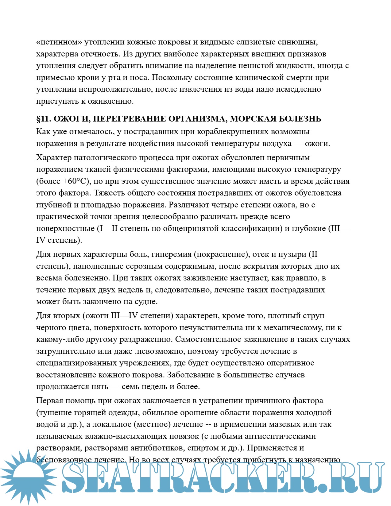 § 11. Ожоги, перегревание организма, морская болезнь