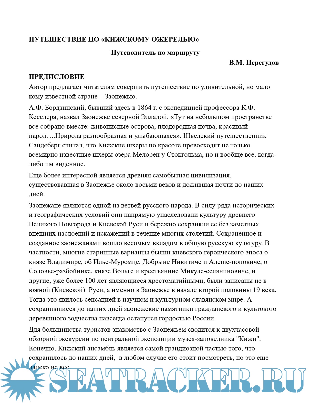 Перегудов В.М. Путешествие по «Кижскому ожерелью» (Путеводитель по маршруту)