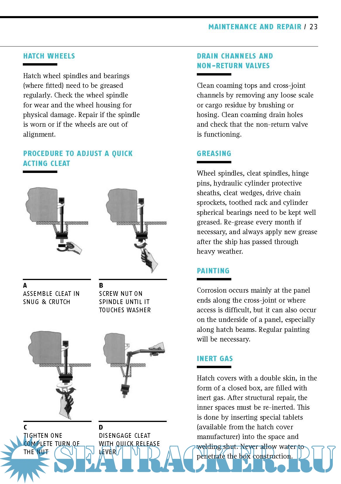 Description: It is generally accepted that leaking hatch covers are a principal cause of cargo wetting. Hatches leak for a variety of reasons, but mainly because of poor maintenance or failure to close them properly. Leaking or badly maintained hatch covers can lead to more serious consequences than wet cargo – flooding, accelerated corrosion or even loss of the ship. These problems are addressed in the guide.