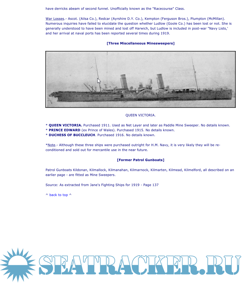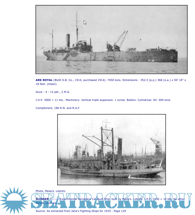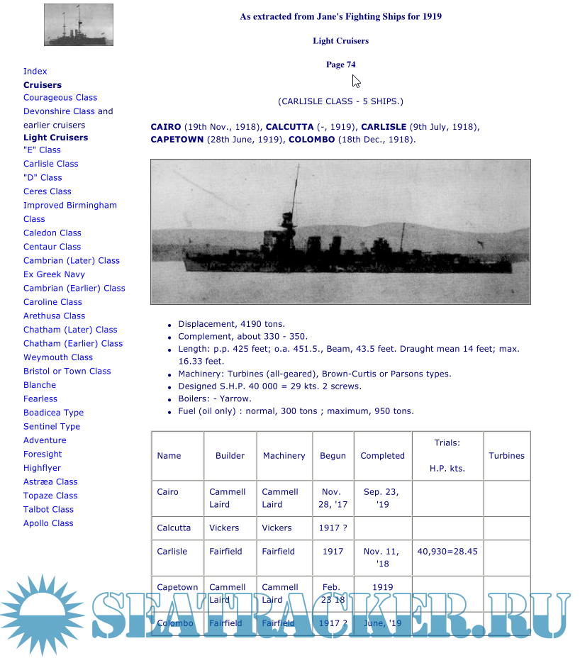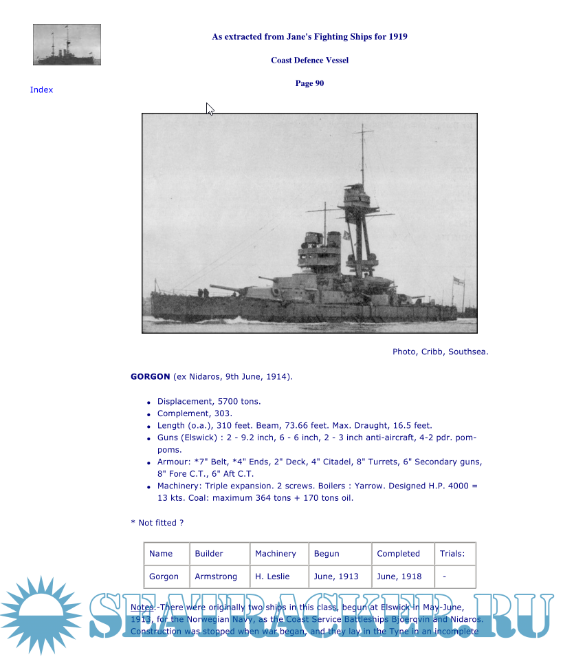 Additional info: Extracted from Jane's Fighting Ships 1919