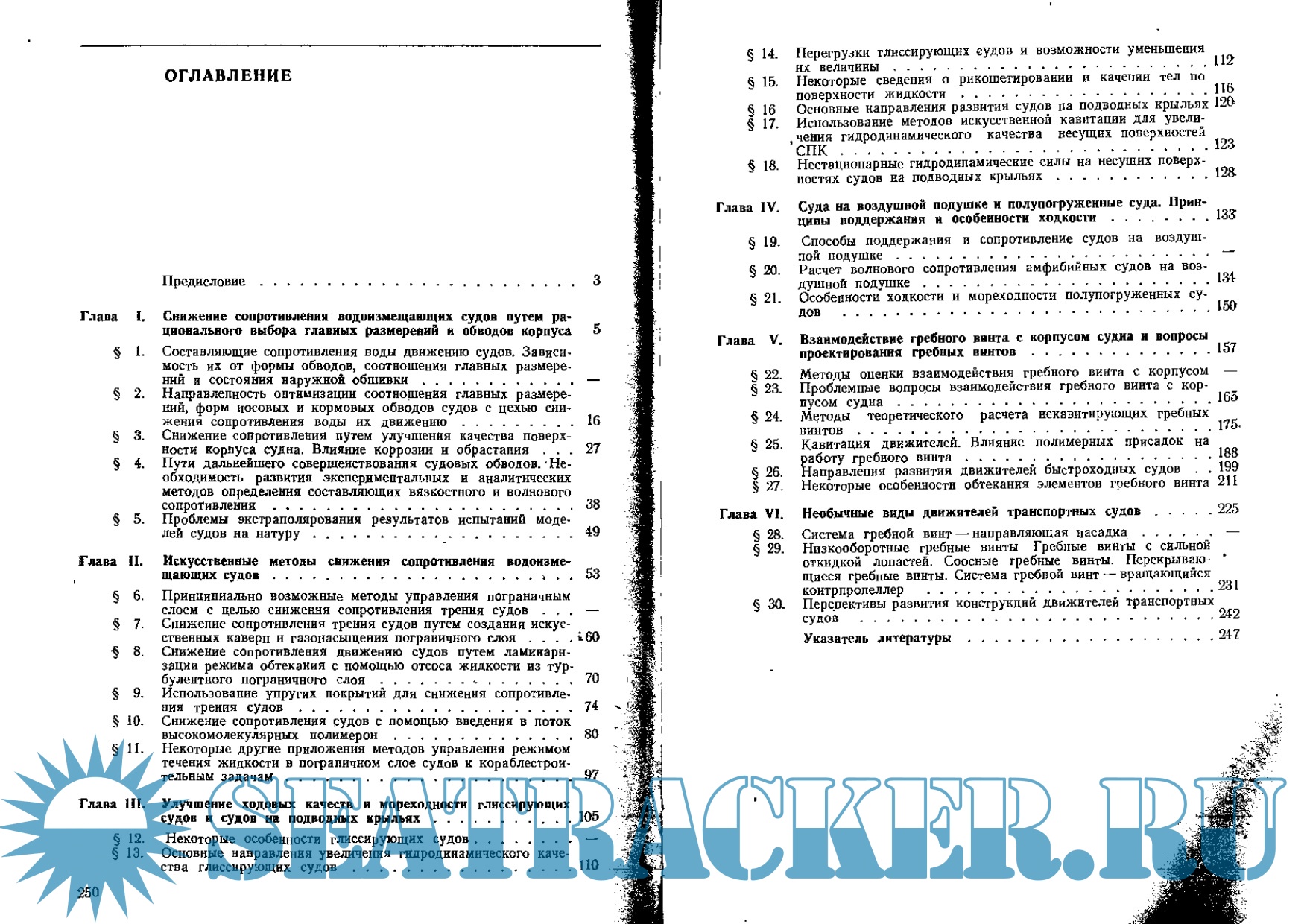 Описание: В книге изложены методы снижения сопротивления воды движению водоизмещающих судов, основанные как на рациональном выборе главных размерений и обводов корпуса, так и на применении различных методов искусственного управления пограничным слоем и т. п. Рассмотрены режимы движения быстроходных судов — глиссирующих, на подводных крыльях и на воздушной подушке. Изложены физические особенности каждого из этих режимов движения. Намечены пути совершенствования ходовых качеств судов с динамическими принципами поддержания. Большое внимание уделено проблеме повышения эффективности действия судовых движителей. Рассмотрены перспективы дальнейшего развития гребных винтов, а также конструкции и гидродинамические особенности других типов движителей — винтов в направляющих насадках, соосных винтов и др.