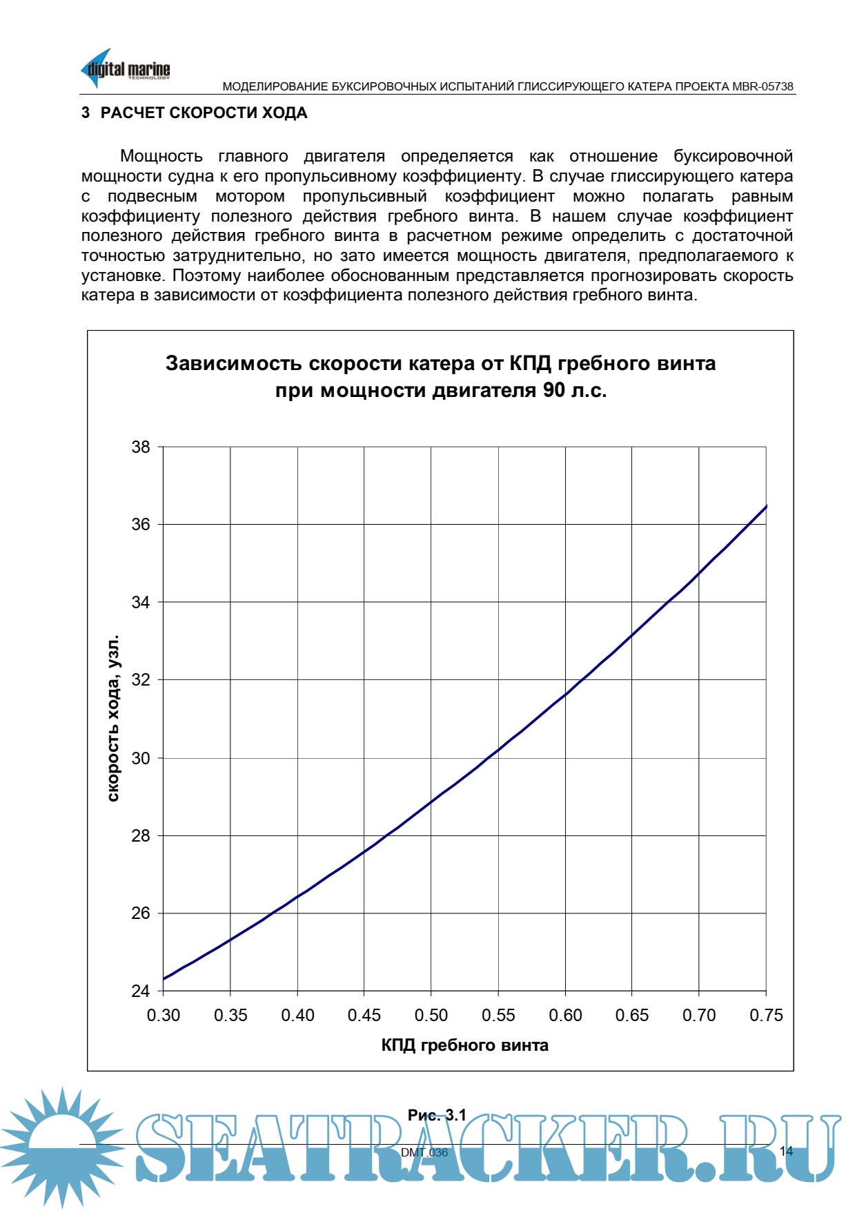 Моделирование буксировочных испытаний глиссирующего катера проекта MBR-05738