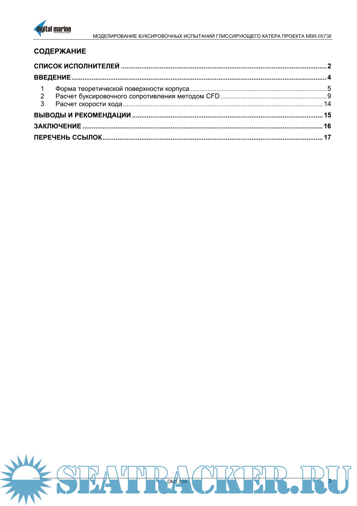 Описание: Работа выполнена в рамках разработки проекта глиссирующего катера MBR Целью работы является определение буксировочного сопротивления и буксировочной мощности катера в режиме глиссирования с проектной скоростью, а также характеристик динамической посадки. Определение буксировочного сопротивления и мощности, а также характеристик динамической посадки выполнено методами вычислительной гидромеханики (CFD) для расчетной скорости катера 30 узлов на тихой глубокой воде при проектном весовом водоизмещении. В заключительной части работы выполнен анализ соответствия характеристик подвесного мотора, выбранного проектантом, буксировочным характеристикам катера при проектной скорости