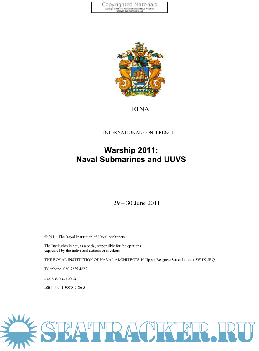 Description: Collection of papers regarding naval submarines and UUVs submitted to the International Conference in Bath, UK between 29 – 30 June, 2011.