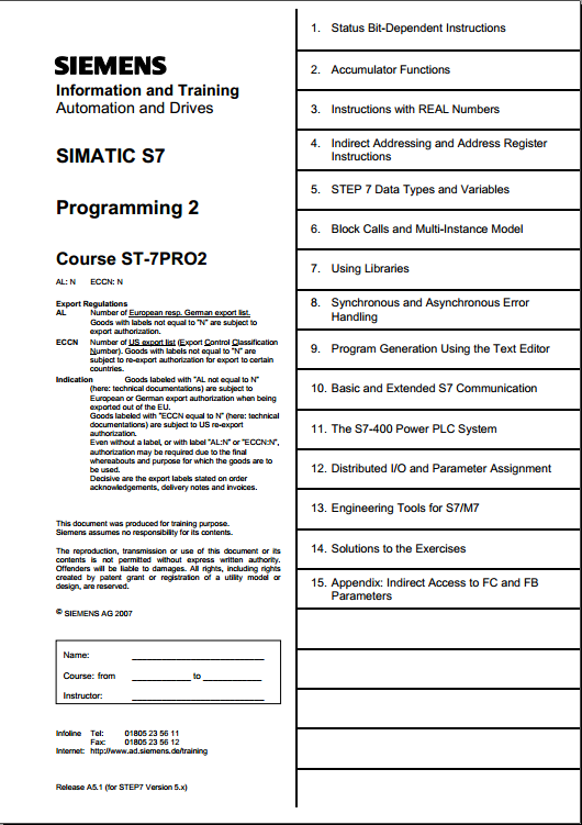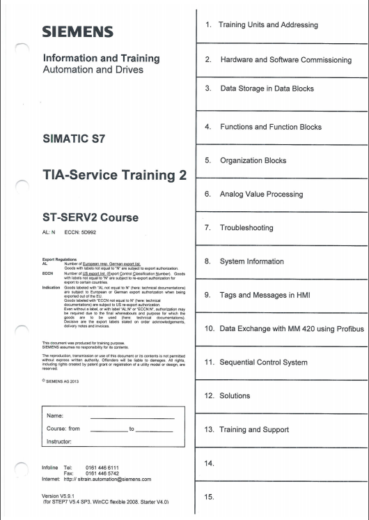 Siemens Simatic S7 Training courses ST-7PRO1/ST-7PRO2/ST-SERV1/ST-SERV2
