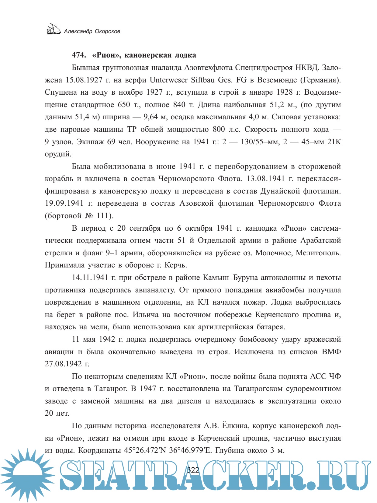 Год выпуска: 2016 Язык: русский Автор: Окороков А. Жанр: Справочное издание Издательство: Институт Наследия Формат: PDF Качество: Отсканированные страницы Количество страниц: 440 Описание: Данная работа представляет собой издание научно-справочного характера, призванное дать общее представление об объектах подводного культурного наследия в границах территориальных вод России. Основой Свода являются сведения, полученные при изучении архивных источников и литературы, отчётов подводных историко-археологических экспедиций, данных специализированных государственных служб и организаций, материалов региональных управлений культуры и приморских музеев, информации дайверских клубов и центров, исторических и поисковых порталов и сайтов и др. Издание поможет в формировании оценки перспективности дальнейшего изучения конкретного объекта, реконструкции исторической обстановки и исторических событий.