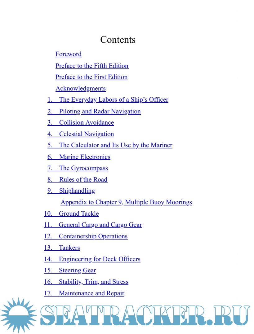 Additional info: Настоящая книга считается на ряду с ''American Practical Navigator'' Библией для судоводителей и особенно для младших офицеров. Он будет особенно полезен для 3-го помощника капитана.