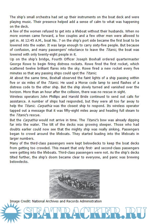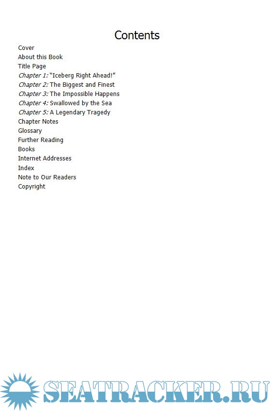 Year: 2013 Language: english Author: Cole M.D. Genre: History Publisher: Enslow Publishers ISBN: 1464401063 Format: EPUB Quality: eBook Pages count: 37 Description: The TITANIC was the largest ocean liner ever built. Shipbuilders hailed its state-of-the-art design. First-class passengers enjoyed extravagant luxuries onboard. But on April 15, 1912, five days after departing on its maiden voyage, disaster struck. Lookout Frederick Fleet spotted an iceberg in the darkness ahead. The crew tried desperately to turn the monstrous ship, but the iceberg tore through its side, sealing the TITANIC's fate. Two hours later, the unsinkable ship disappeared into the Atlantic Ocean, taking fifteen hundred passengers with it. One hundred years later, the TITANIC and its tragic story still draw attention. Author Michael D. Cole examines the harrowing journey of this historic shipwreck.