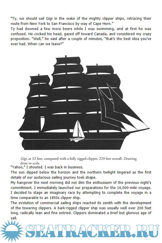 Description: Legendary account of the author's voyage around Cape Horn in a 32-foot sailboat, sailing east-to-west (thus the Horn is to starboard, or on the right). This is a notoriously difficult and dangerous passage, especially in a boat this size.