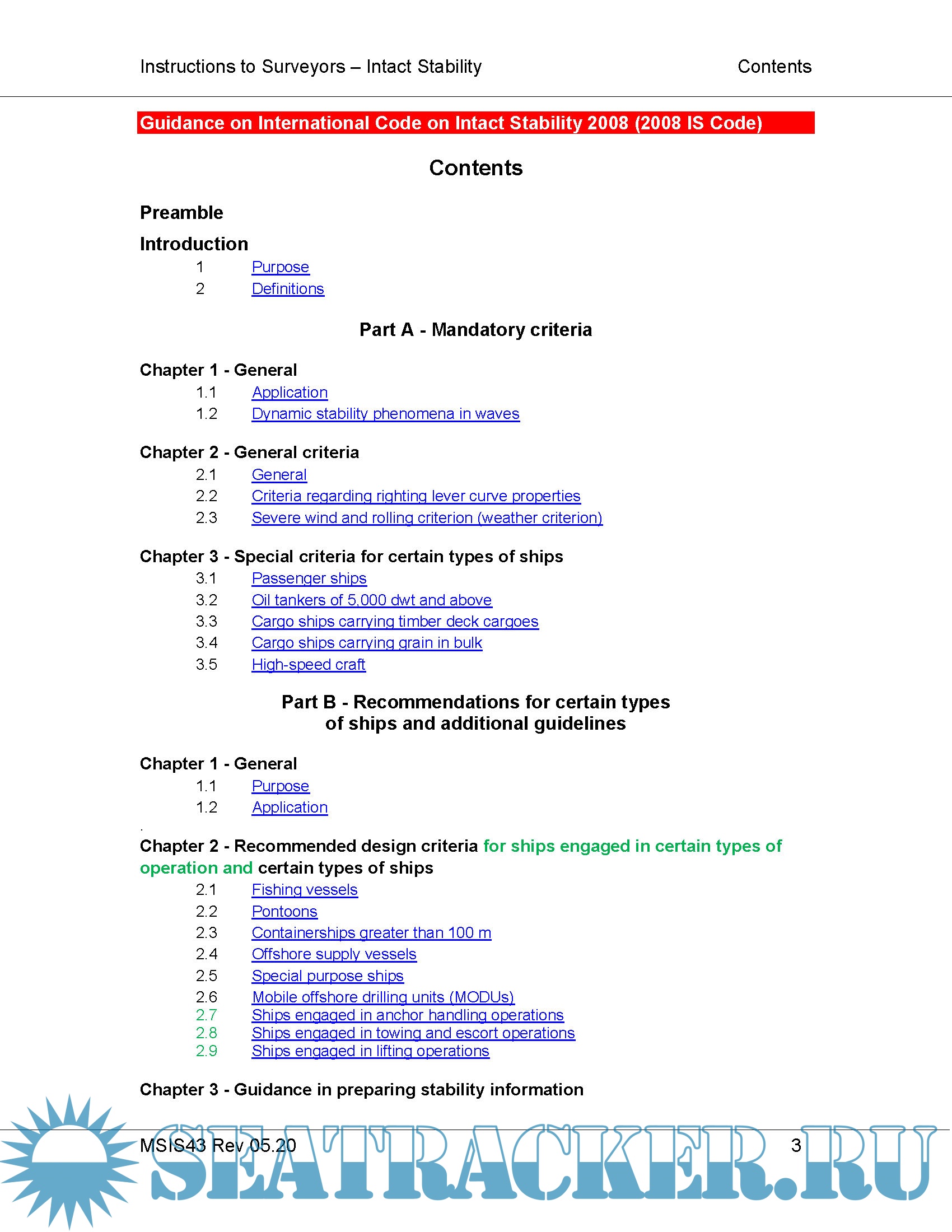 Description: INSTRUCTIONS FOR THE GUIDANCE OF SURVEYORS ON INTACT STABILITY IMO 2008 IS CODE