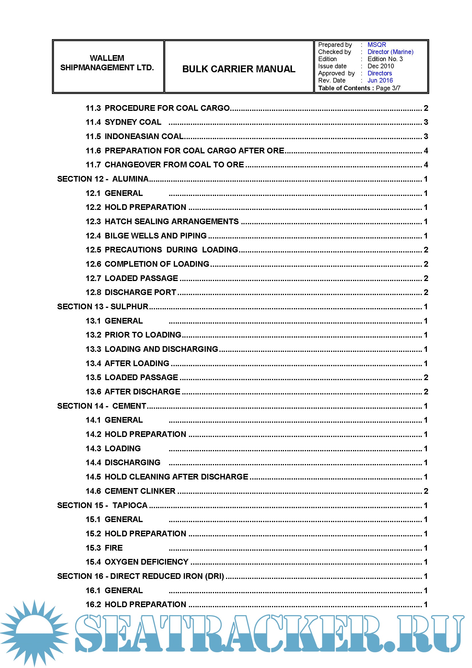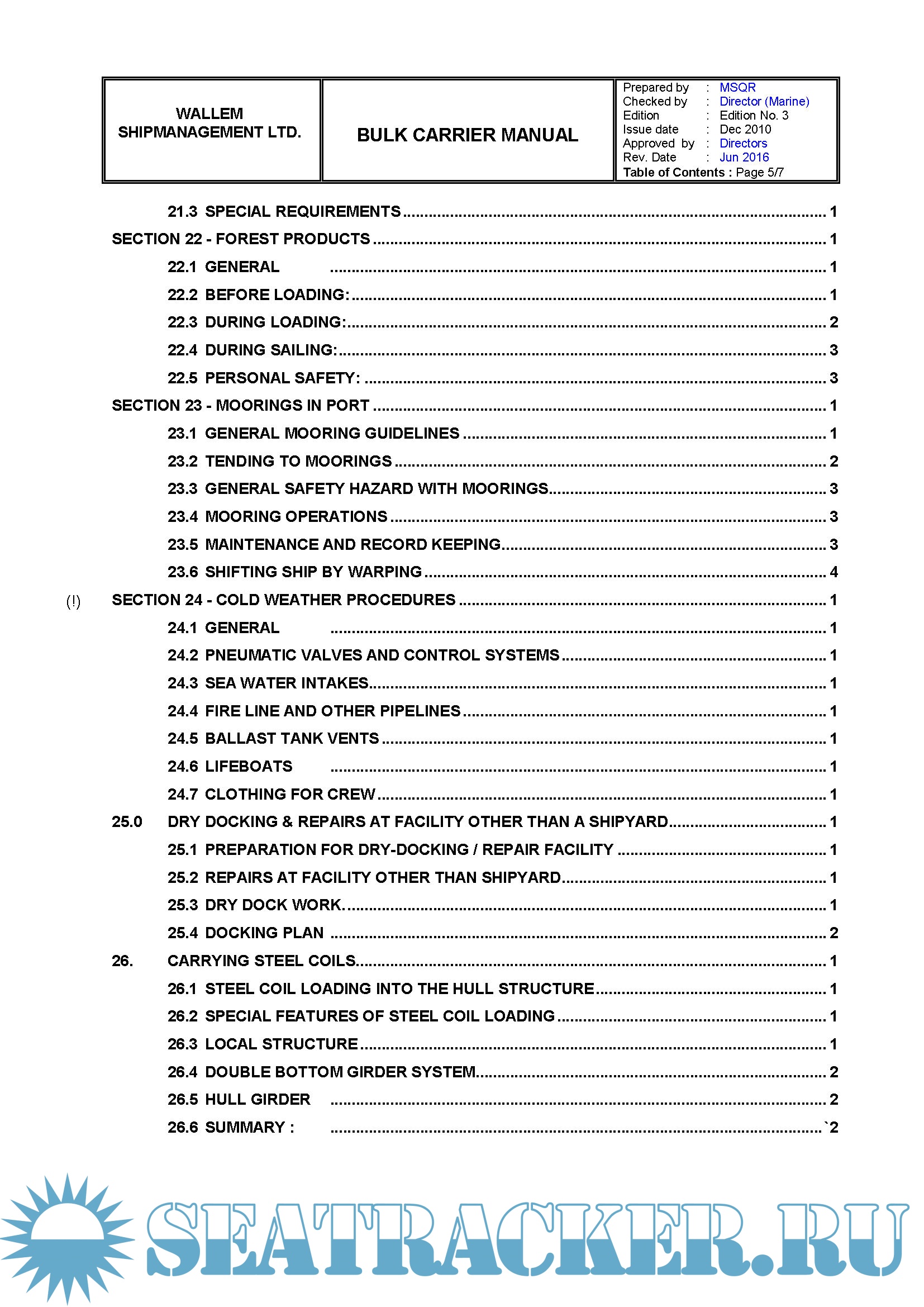 Description: The purpose of this manual is to provide guidance to the Master, Officers and approriate ratings on the procedures to be followed on board a bulk carrier in order to attain safe and efficient Bulk Carrier Operations.