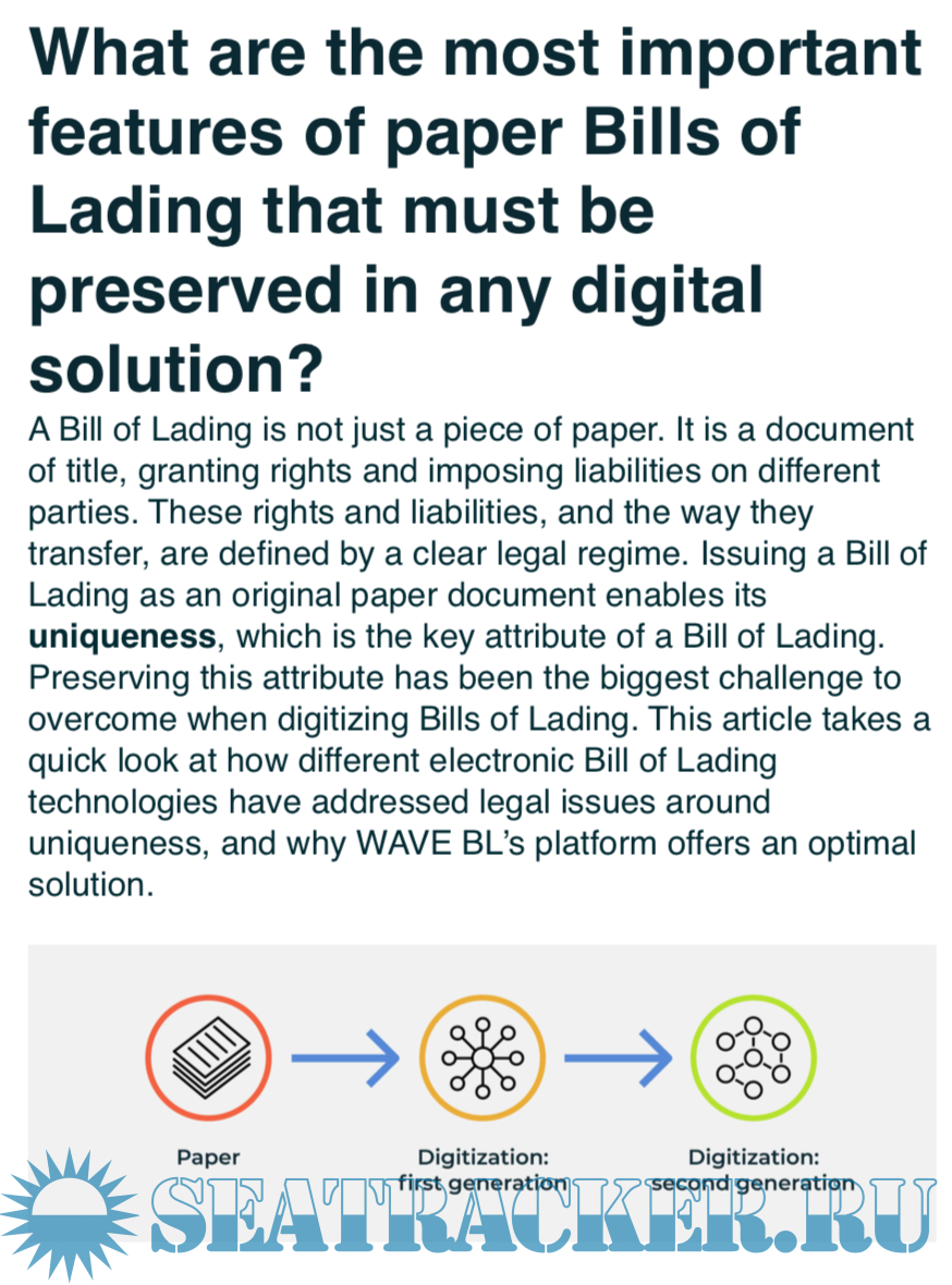 Year: 2021 Language: english Author: Boaz Lessem Genre: Guide Publisher: Wave BL Format: PDF Quality: eBook Pages count: 12 Description: A Bill of Lading is not just a piece of paper. It is a document of title, granting rights and imposing liabilities on different parties. These rights and liabilities, and the way they transfer, are defined by a clear legal regime.
