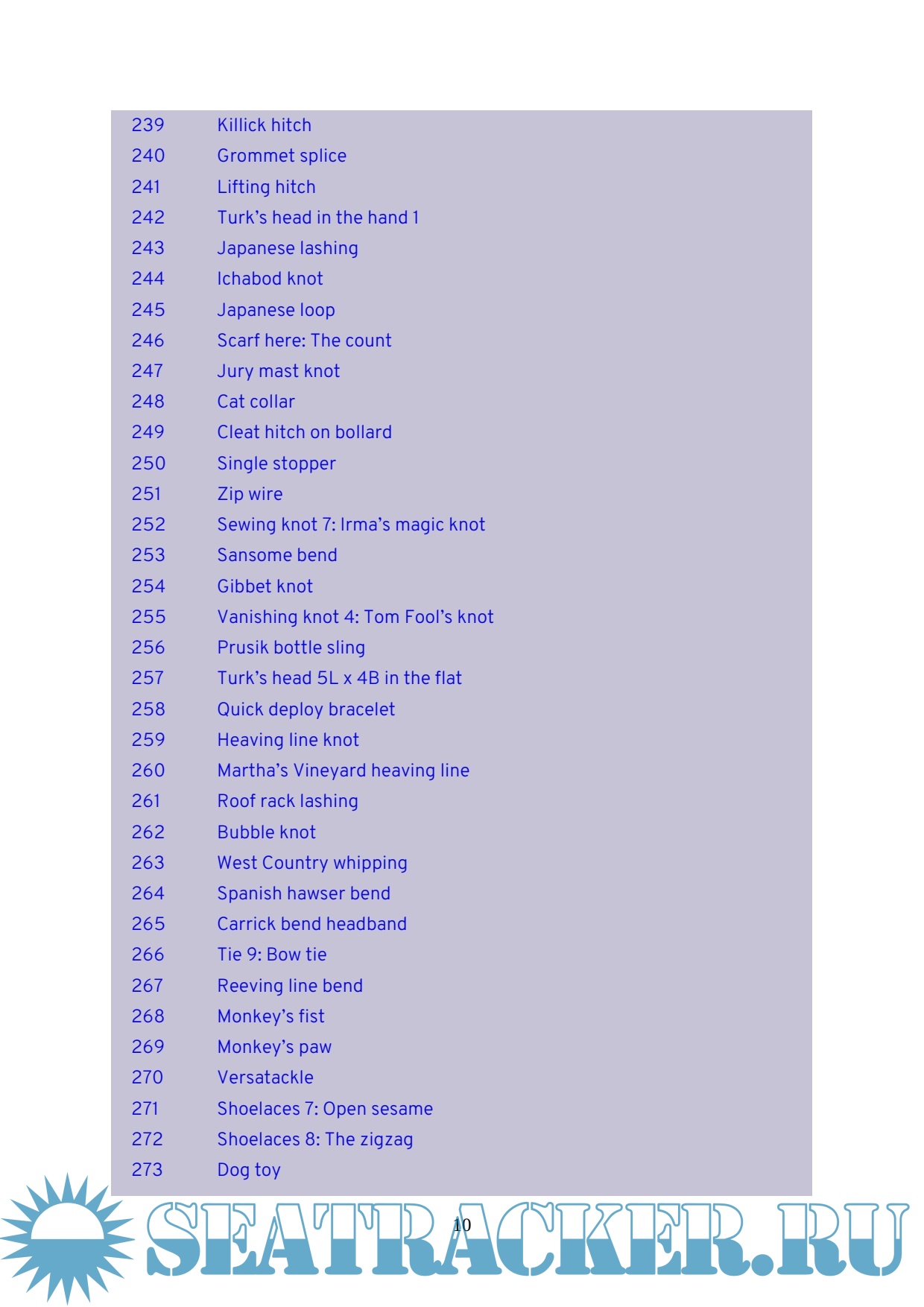 - useful hitches, bends, whippings and splices
