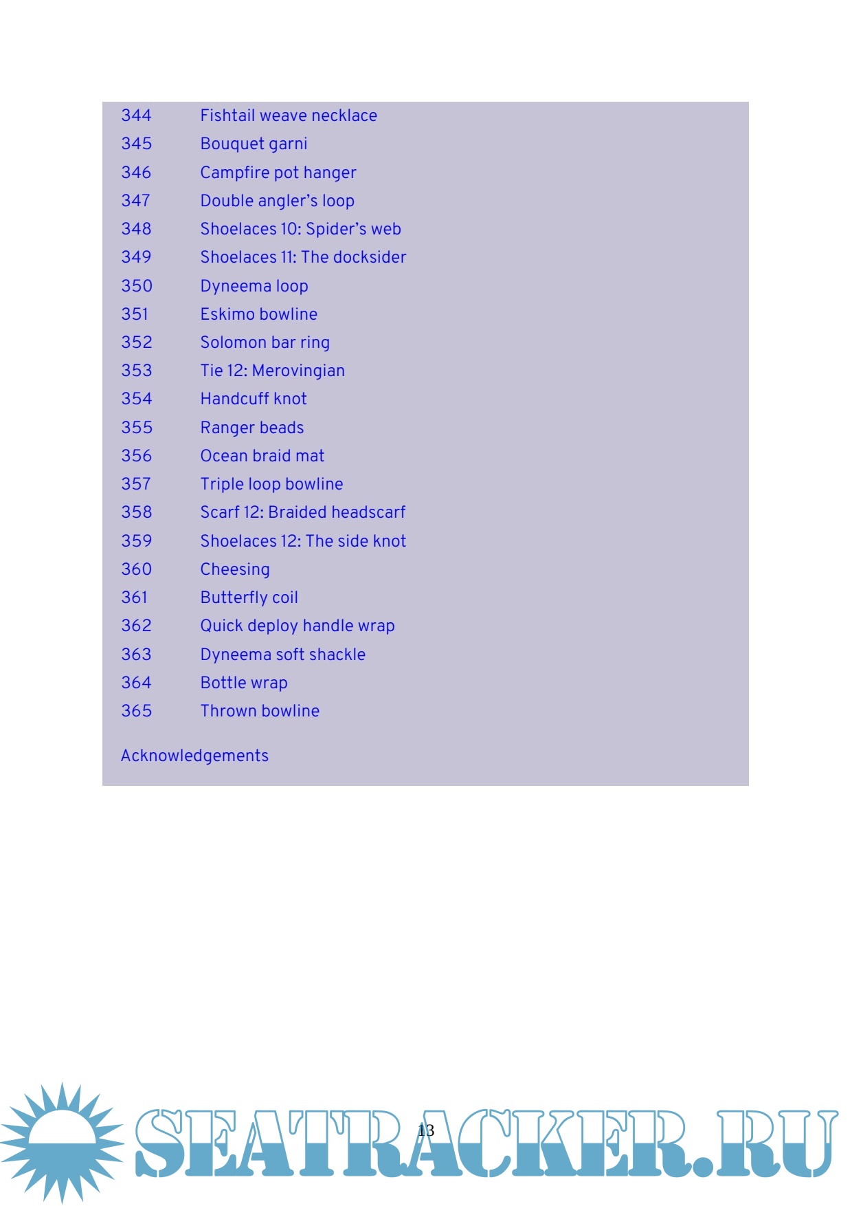 You won't escape this book without learning something, and you won't put it down without picking up an interesting fact or useful technique. Give it a month and you'll be a knot tying fanatic; give it a year and you'll be a knotting supremo!