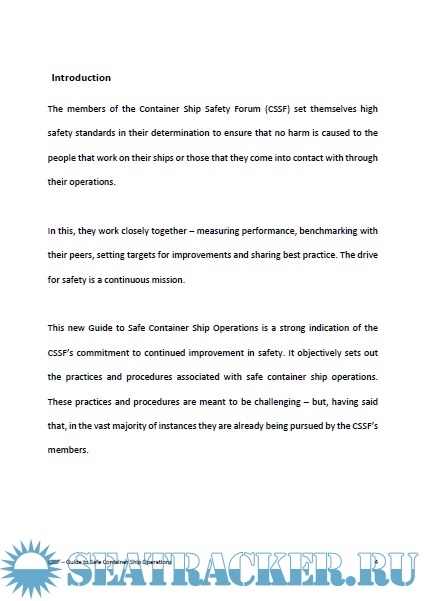 Description: The industry association Container Ship Safety Forum (CSSF) published its first Guide to Safe Container Ship Operations to improve the existing safety measures, providing practices and procedures for safe container ship operations.