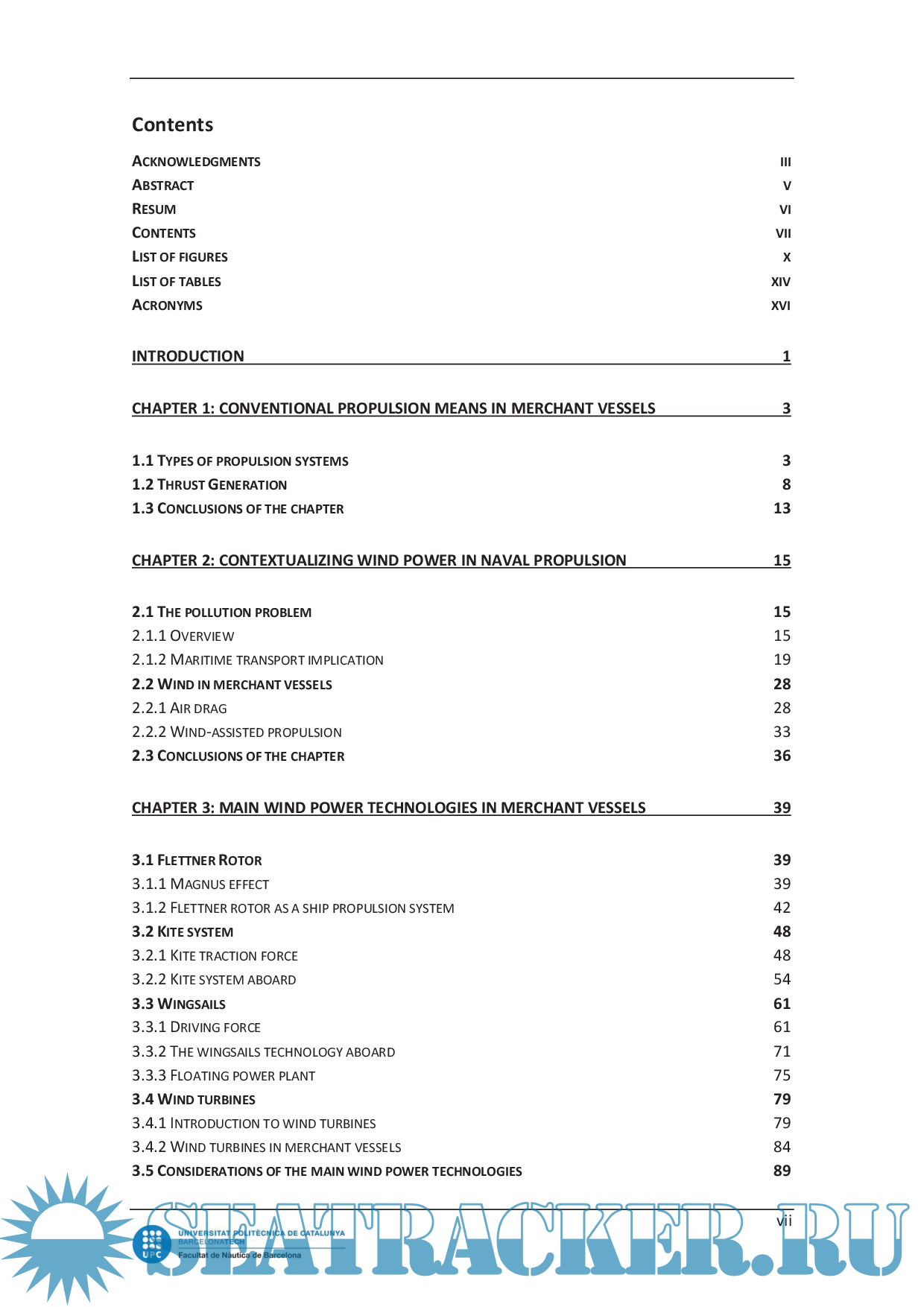 1. It is a compilation of the existing wind power technologies for the propulsion of merchant ships, such as Flettner rotors or wingsails, among others. A study of each technology has been carried out, regarding their physical principles, their operation, their adaptation and installation aboard vessels and the energy benefits they bring. The thesis may be considered, in part, as an encyclopedia of modern and innovative wind power technologies for naval propulsion.
