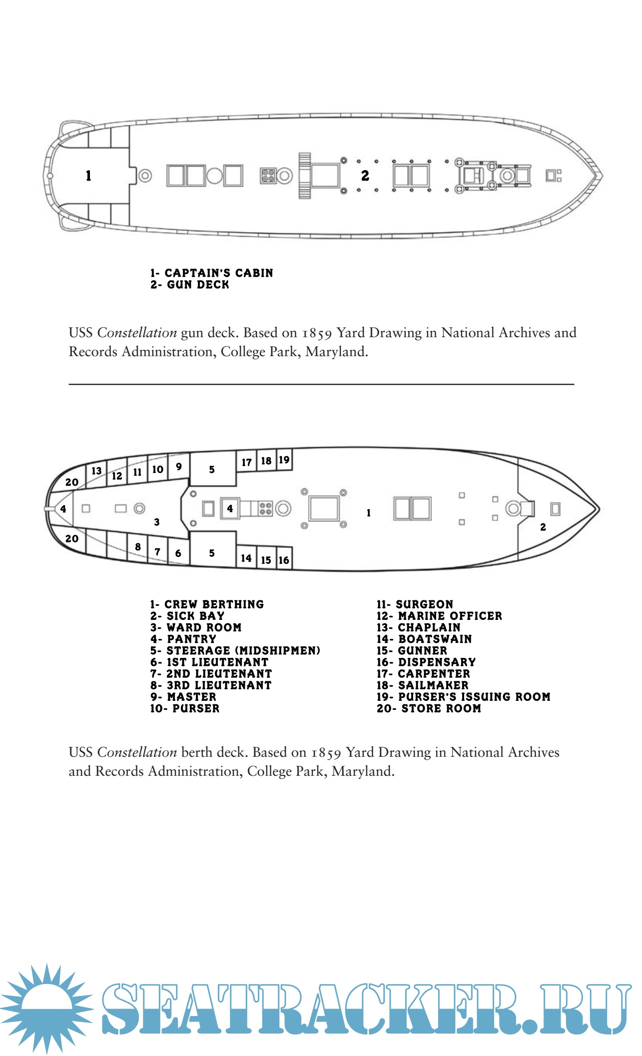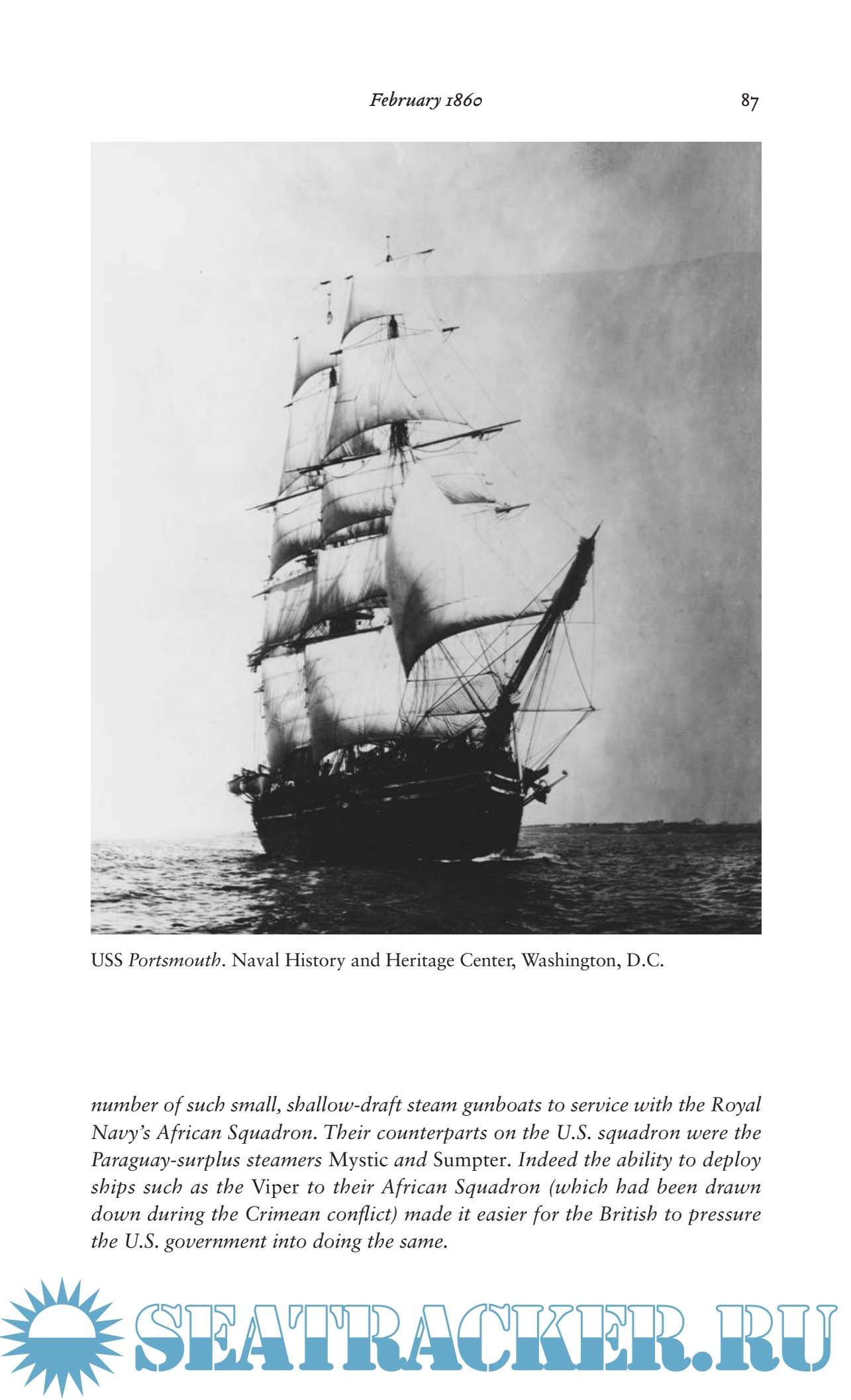 Sailing from Boston, the Constellation, flagship of the U.S. African Squadron, was charged with the interception and capture of slave-trading vessels illegally en route from Africa to the Americas. During the Constellation's deployment, the squadron captured a record number of these ships, liberating their human cargo and holding the captains and crews for criminal prosecution. At the same time, tensions at home and in the squadron increased as the American Civil War approached and erupted in April 1861.