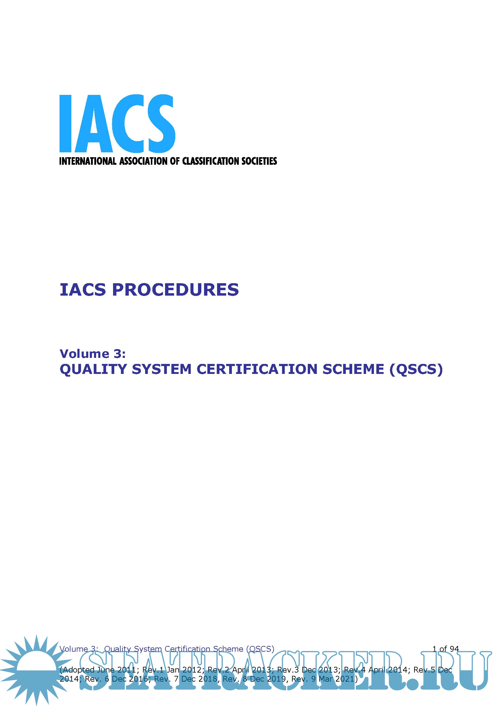 Description: Volume 3. Rev.9 IACS Quality System Certification Scheme (QSCS) - Mar 2021