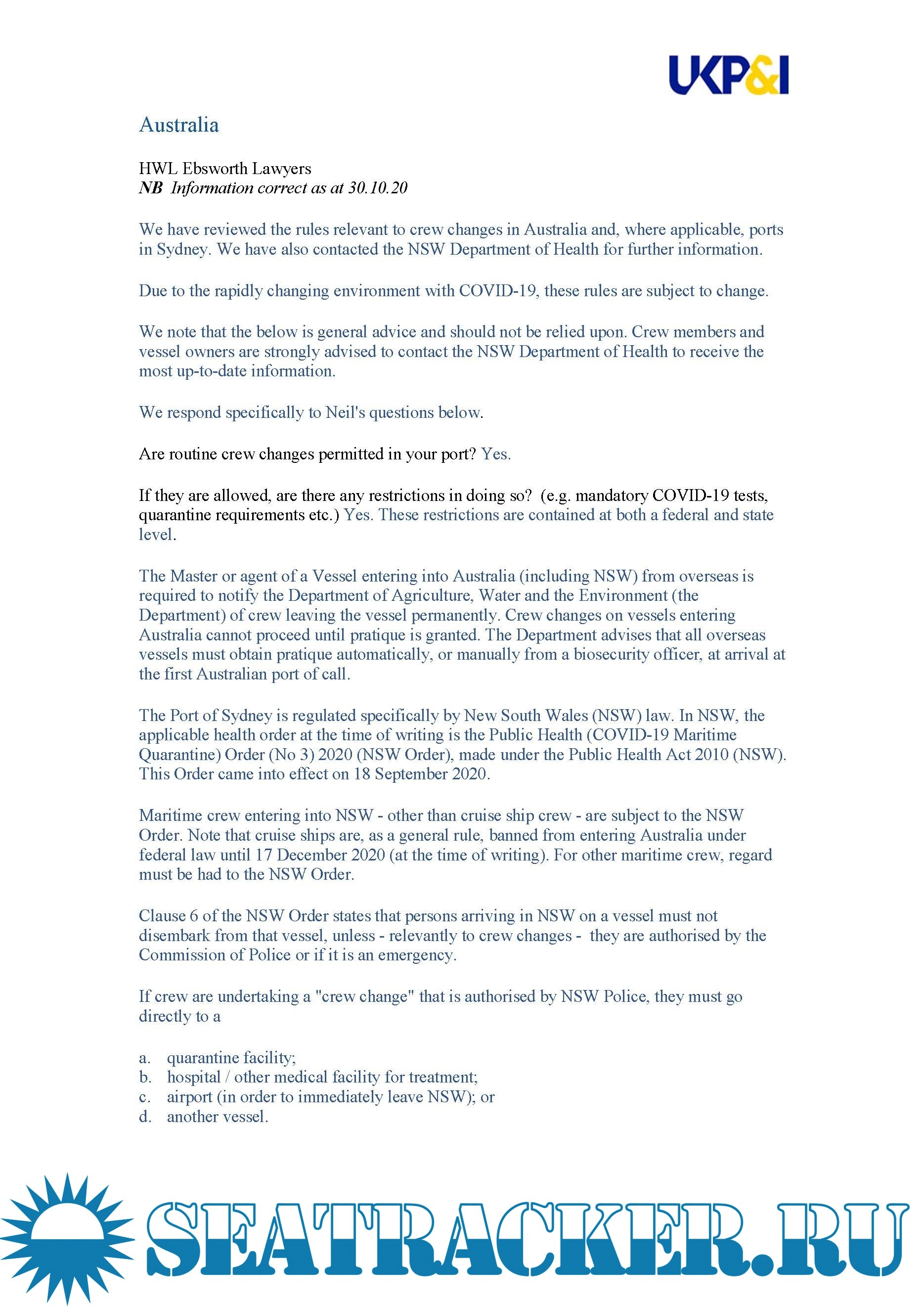 Year: 2021 Language: english Author: UK P&I Club Genre: Guide Format: docx Quality: eBook Pages count: 149 Description: Updated 11/06/2021 The UK Club has been working with over 200 members of our correspondents network to produce a comprehensive document that outlines challenges and changes for crew changes in ports. The document is structured to answer 4 simple questions: - Are routine crew changes permitted in your port? - If they are allowed, are there any restrictions in do so? (Mandatory COVID19 tests, quar. requirements etc.). - Are crewmembers that are either sick or injured permitted to be disembarked in your port? - If they are allowed, are there any restrictions in doing so? (Mandatory COVID-19 tests, quar. requirements etc.) The document is easy to navigate by using the simple A-Z index at the front. .