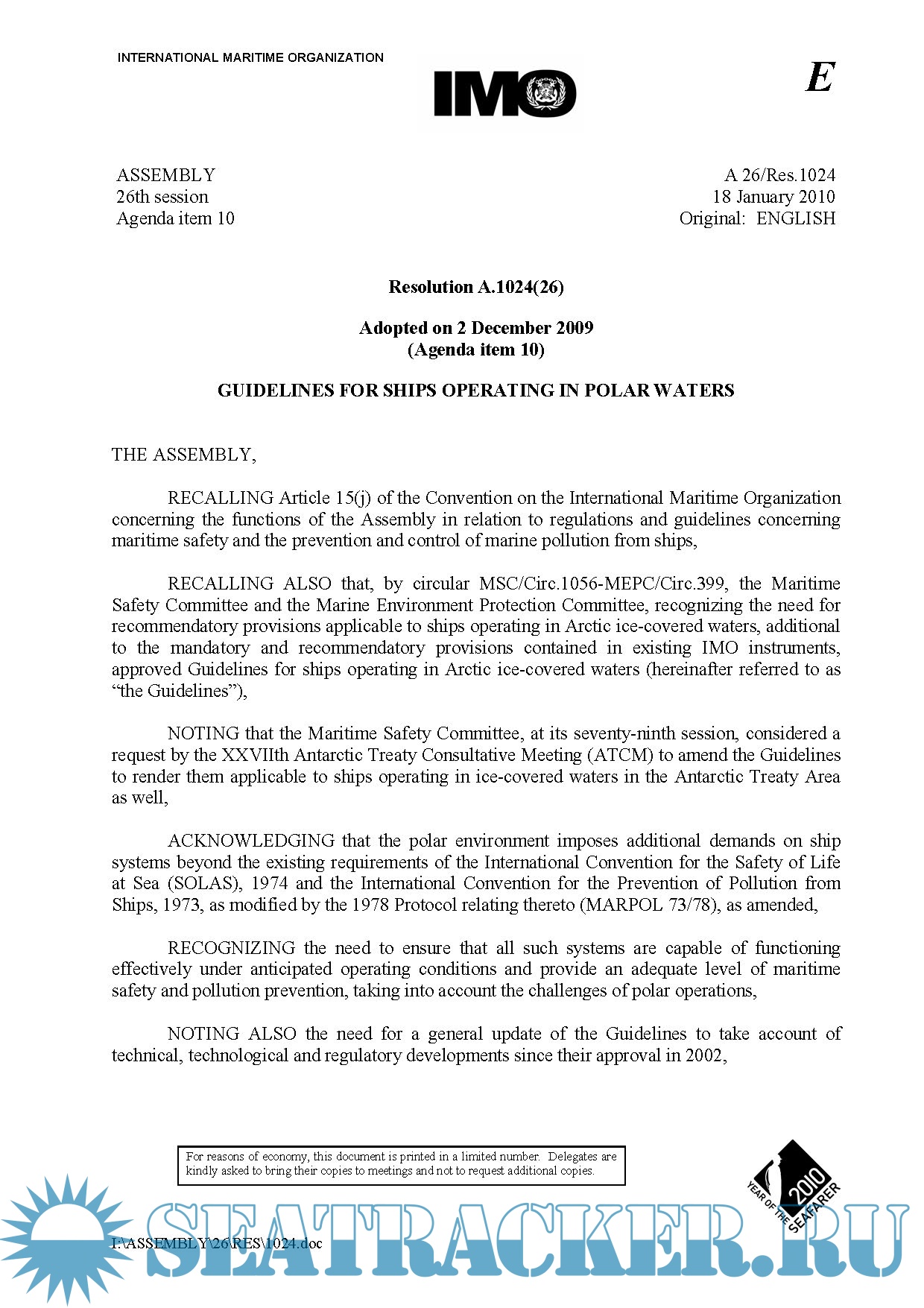 POLAR Code (International Code for Ships Operating in Polar Waters) - IMO [2016, PDF]