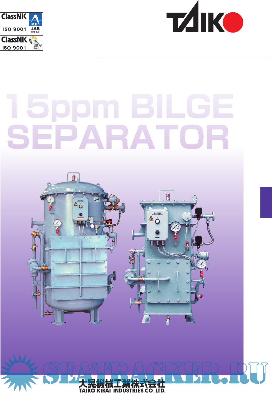 Description: This Instruction Manual describes instructions and cautions to be observed in the handling and maintenance of TAIKO OILY WATER SEPARATOR which is used to treat the bilge produced primarily in the engine room for marine vessels. Please carefully read this Instruction Manual in order to perform proper operation and good maintenance so as to have a longer service life of this separator.