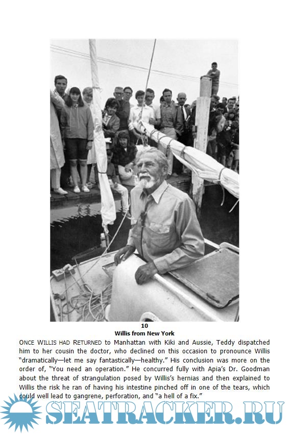 He’d been inspired by Kon-Tiki, Thor Heyerdahl’s bid to prove that a primitive raft could negotiate the open ocean. Willis’s trips confirmed that a primitive man could as well. Willis survived on rye flour and seawater, sang to keep his spirits up, communicated with his wife via telepathy, suffered from bouts of temporary blindness, and eased the intermittent pain of a double hernia by looping a halyard around his ankles and dangling upside-down from his mast.