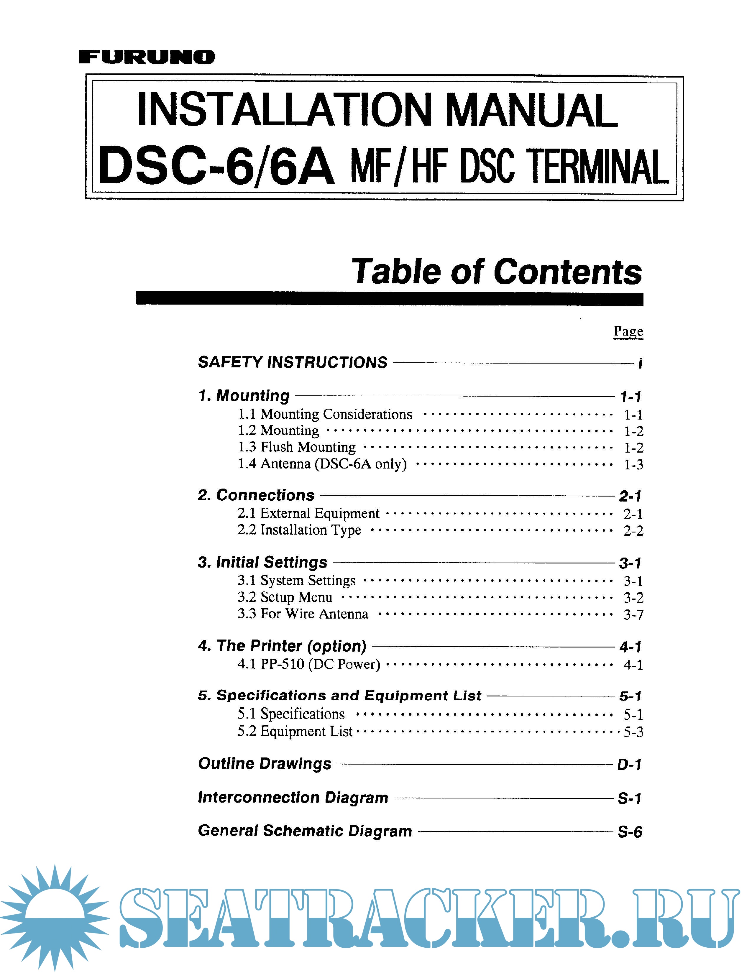 Furuno MF-HF DSC Terminal DSC-6, 6A Specifications, Installation Manual & Operator's Manual