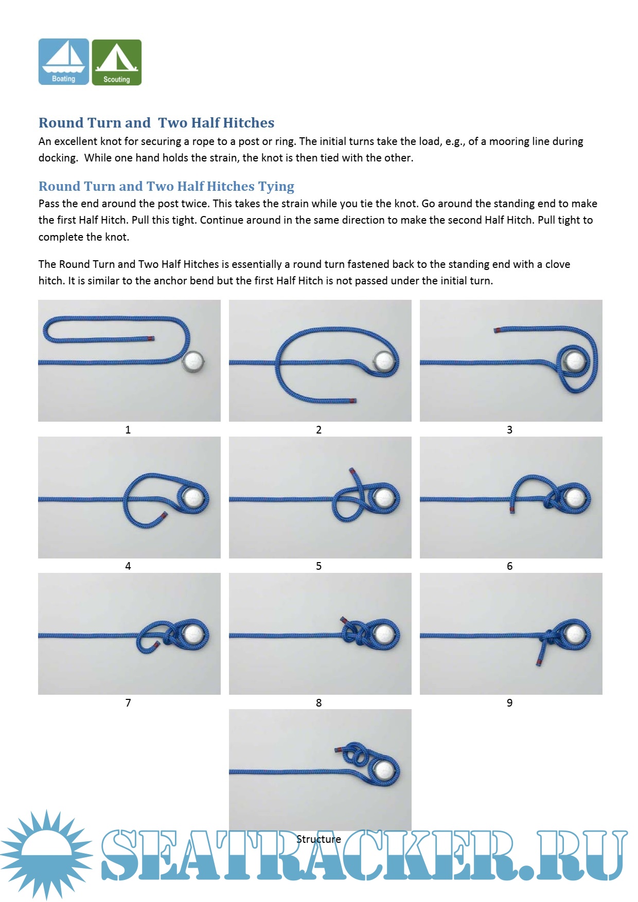 Step-by-step instructions for tying the ten most useful knots and hitches, twenty-two variations, and four essential splices and lashings