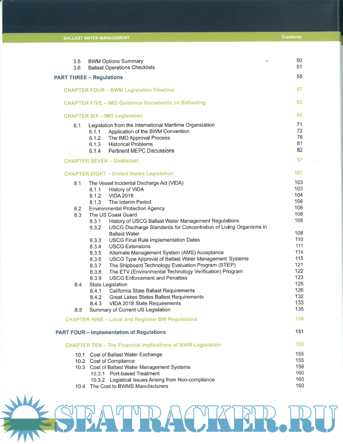 Year: 2020 Language: english Author: Witherby Genre: Guide Format: PDF Quality: Scanned pages Pages count: 467 Description: The Ballast Water Management Convention entered into force on 8th September 2017 and is now fully in effect for all applicable ships. This comprehensive guide provides up-to-date information on the regulations and equipment options available, and will assist shipowners with transition to full compliance. Of key significance in this edition is the deadline of 28th October 2020, after which point only BWMS holding a revised 2016 G8/BWMS Code Type Approval certificate are permitted to be installed. A new set of data sheets summarises the BWMS that meet this new requirement and facilitates easy comparison and evaluation of the various systems. The book discusses the methods and considerations for safe ballast water exchange. It also provides detailed information on the various treatment technologies, including physical separation; thermal, ultraviolet and plasma technologies; and deoxygenation, magnetic and ultrasonic/cavitation technologies. The book sets out the onboard requirements relating to ballast water management, including the Ballast Water Record Book, Port State Control, and ballast water sampling and monitoring. The Appendices identify key invasive species and contain updated charts illustrating current native and invasive ranges, and areas potentially at risk.