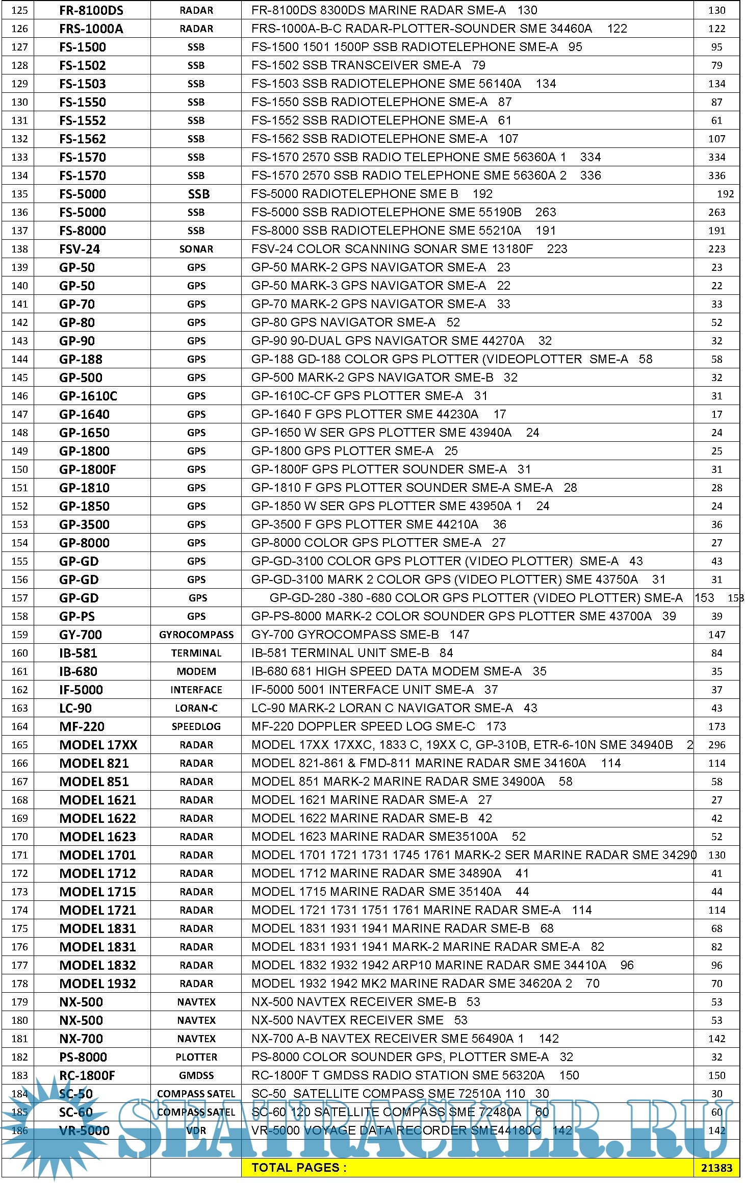 1 AA‐50 RECEIVER AA-50 50R MF-HF DSC WATCH RECEIVER SME 34 342 ARP‐1 PLOTTER ARP-1 2 3 4 AUTO PLOTTER SME 54 54