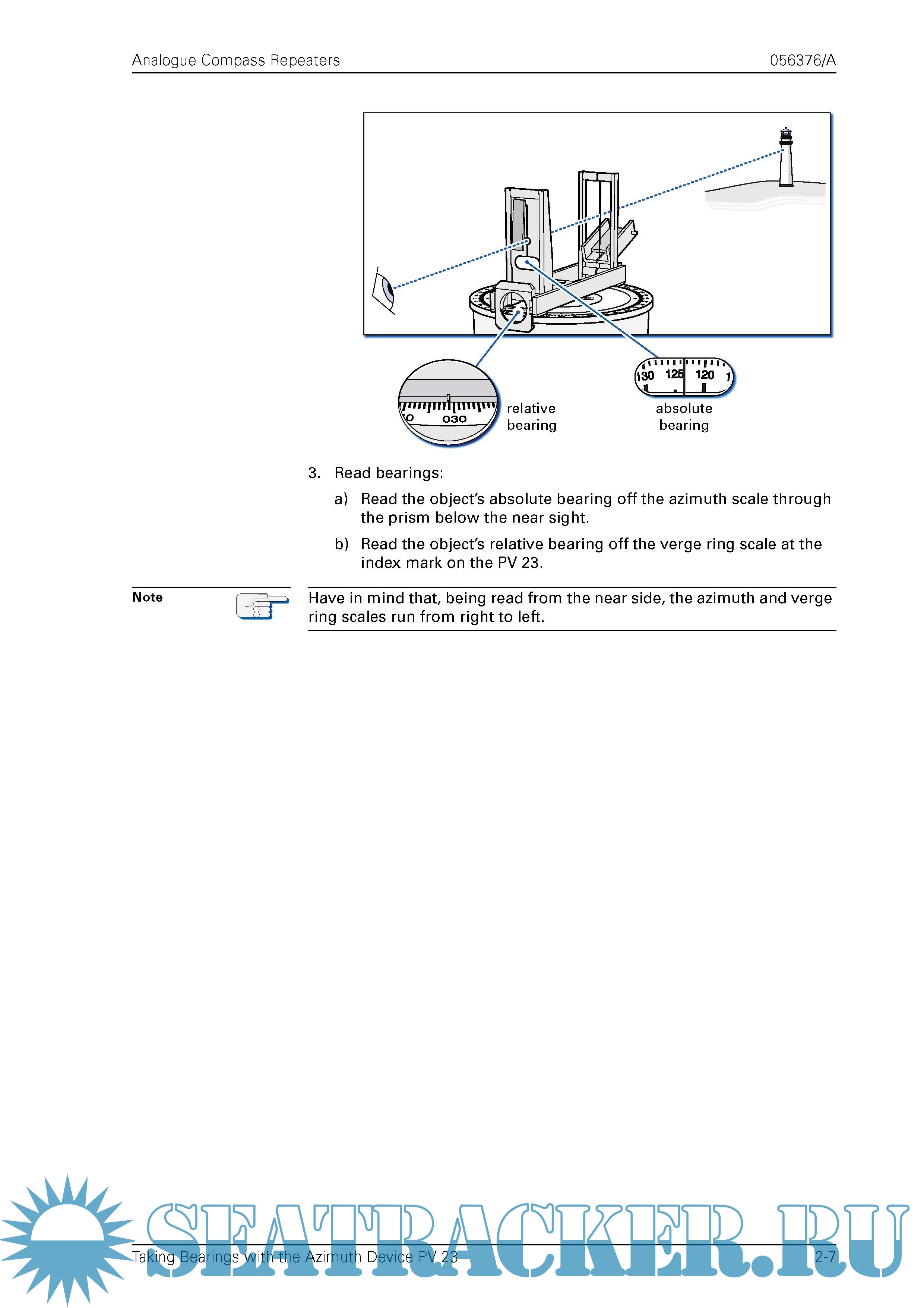 The prismatic azimuth device PV23 is a classified compass bearing device designed for usage together with the bearing repeater 5016-CA.