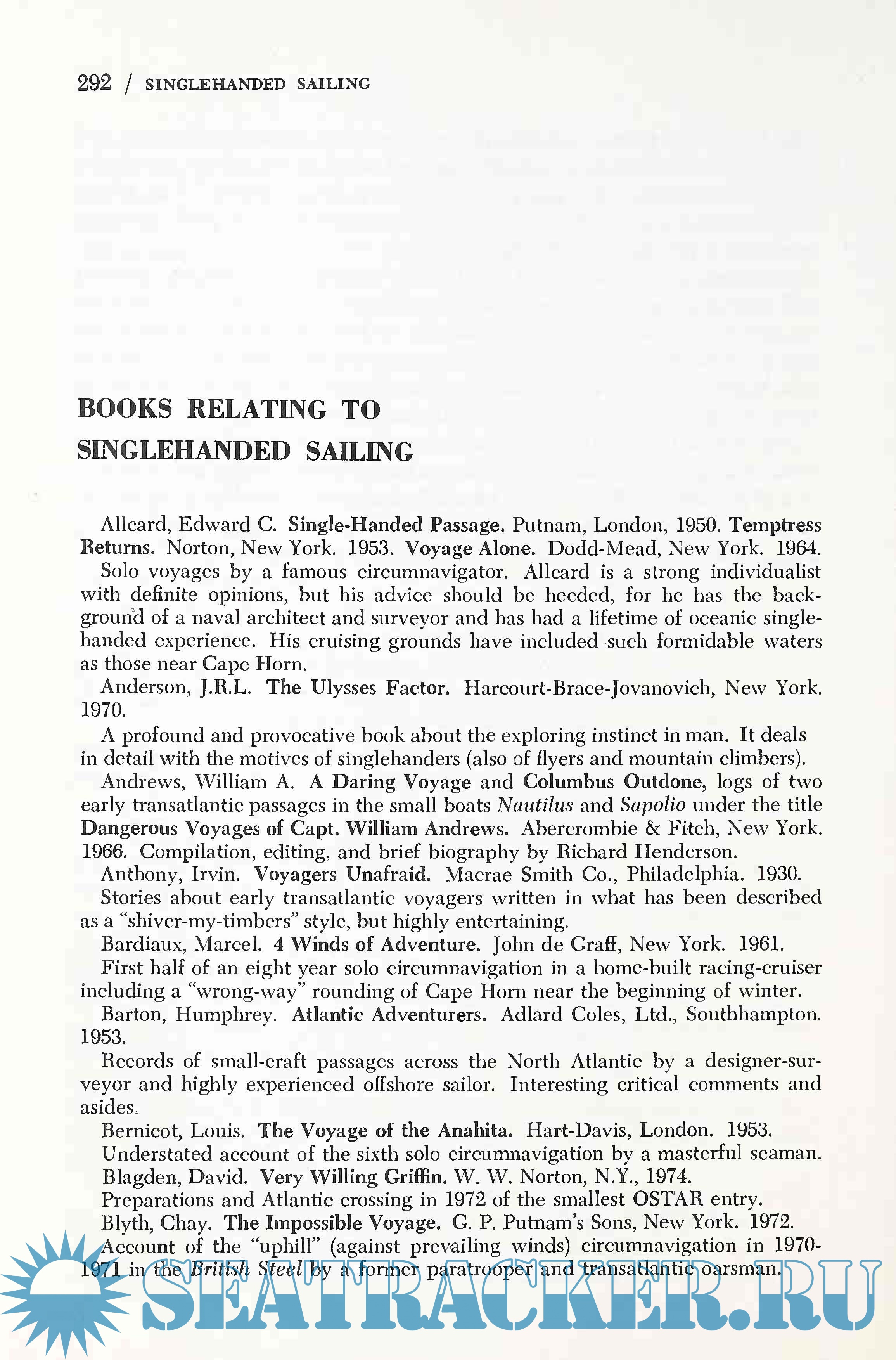 Singlehanded Sailing is a complete book on the subject. In an era when the value of