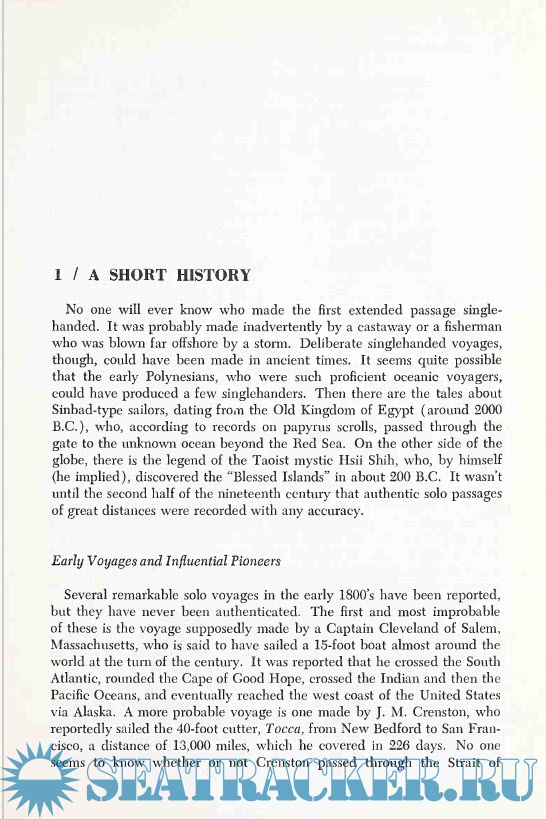 history of singlehanded sailing and psychological aspects of cruising alone.