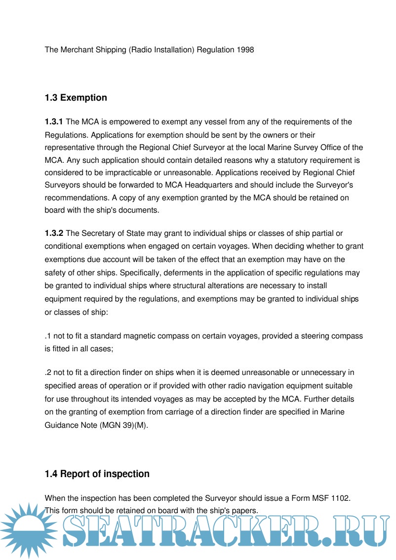 These Instructions are issued by the Maritime and Coastguard Agency (MCA), an Executive Agency of the Department of the Environment, Transport and the Regions* for the guidance of Surveyors inspecting navigational equipment installations for the purposes of the Merchant Shipping (Navigational Equipment) Regulations 1993, referred to as the Regulations. They also indicate to owners, Masters and crews, shipbuilders and installation companies the requirements which certain vessels should meet in order to comply with the Regulations.