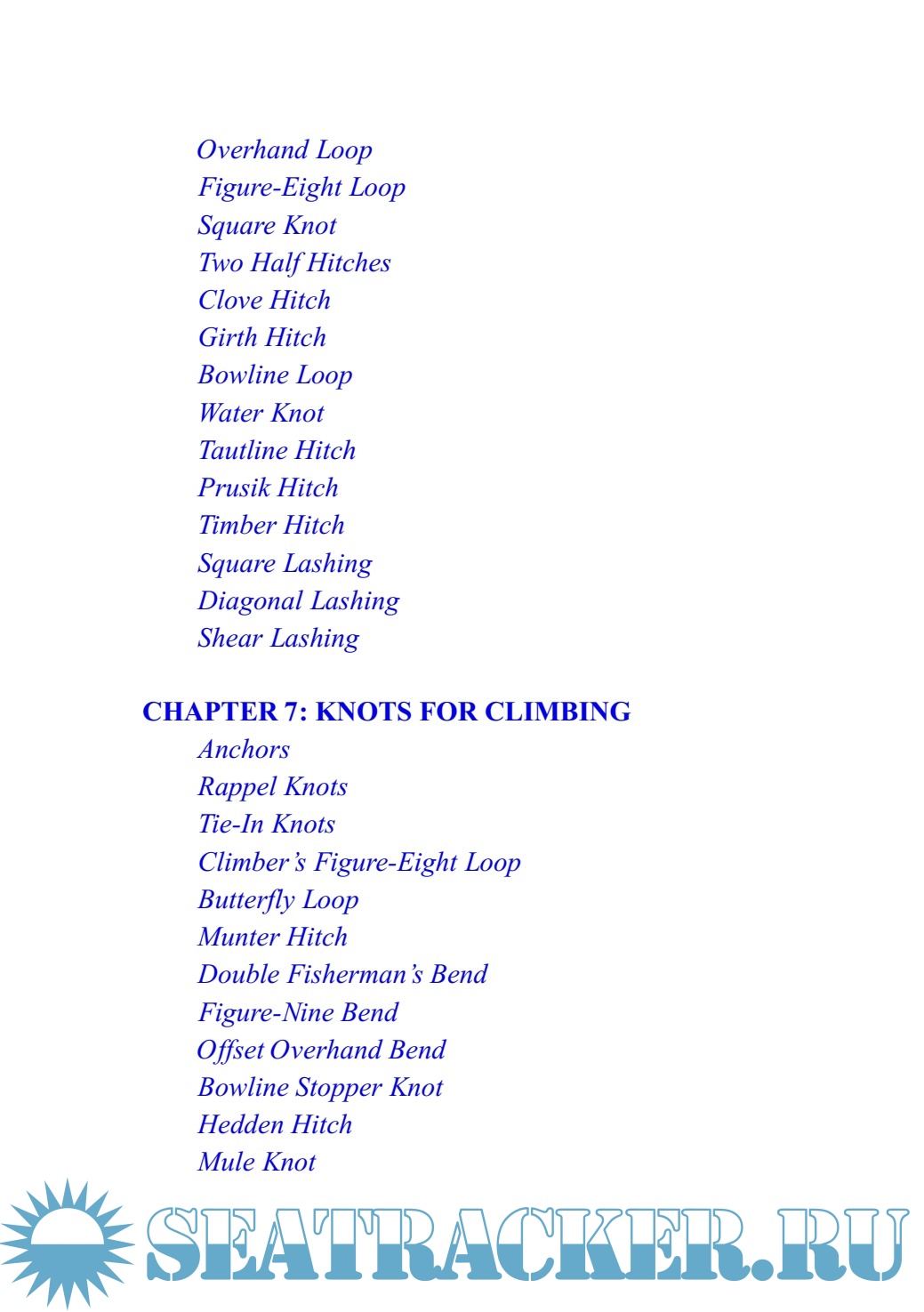 Chapters include Knots Basics (from Tripod Lashing to the Figure 8 Loop), Knots for Hikers and Climbers (from the Prusik knot to the Autoblock), Knots for Canoeists and Kayakers (from the Buntline hitch to the Bowline on a bight), and more. This is the definitive text on ropes and knots for anyone who plays in the outdoors!