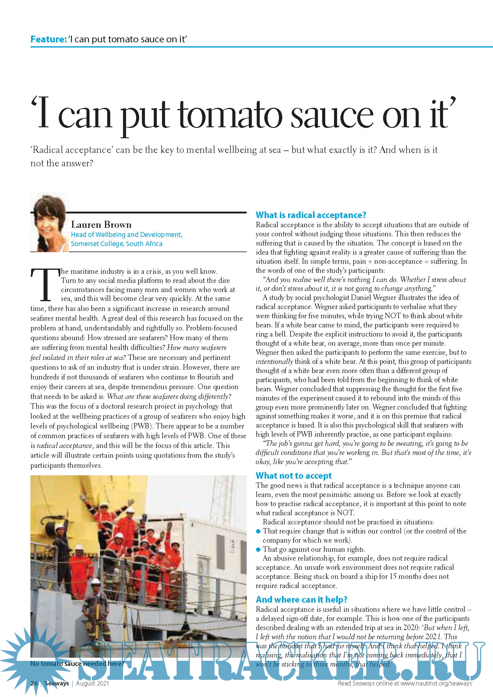 Seaways Recognised as one of the leading maritime journals, Seaways is sent out to all members monthly. It is the international journal of The Nautical Institute and has the most vibrant professional correspondence section to be found anywhere in the industry.