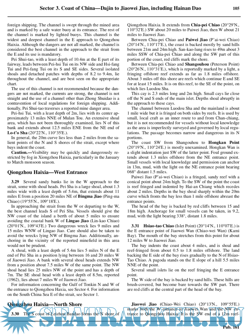 Pub. 161, Sailing Directions (Enroute) South China Sea and the Gulf of Thailand, Seventeenth Edition, 2020, is issued for use in conjunction with Pub. 120, Sailing Directions (Planning Guide) Pacific Ocean and Southeast Asia. Companion volumes are Pubs. 162, 163, and 164.