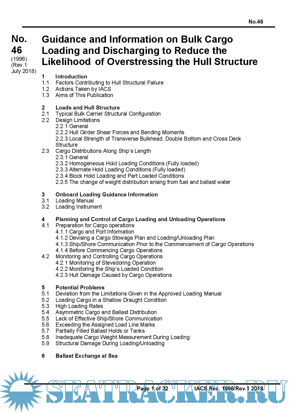 Bulk Carriers - Guidance and Information on Bulk Cargo Loading and Discharging to Reduce the…