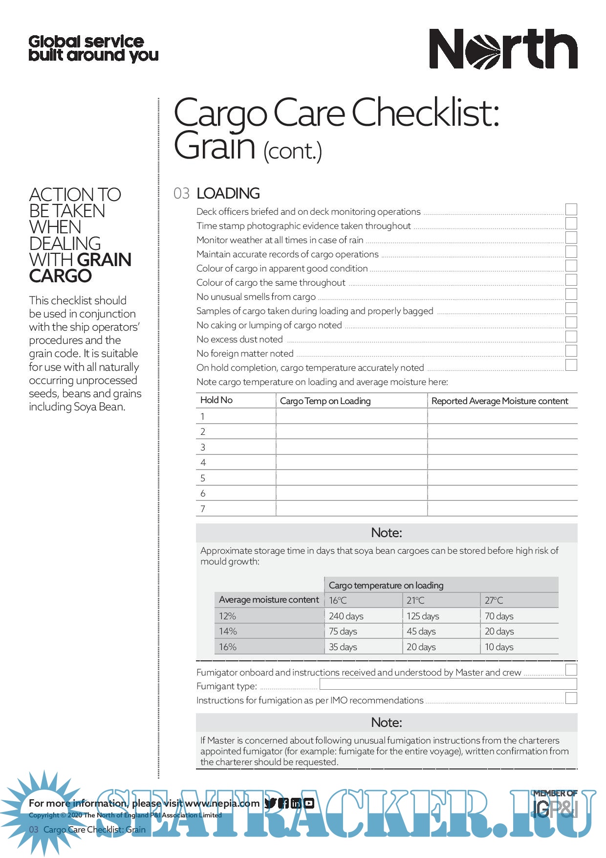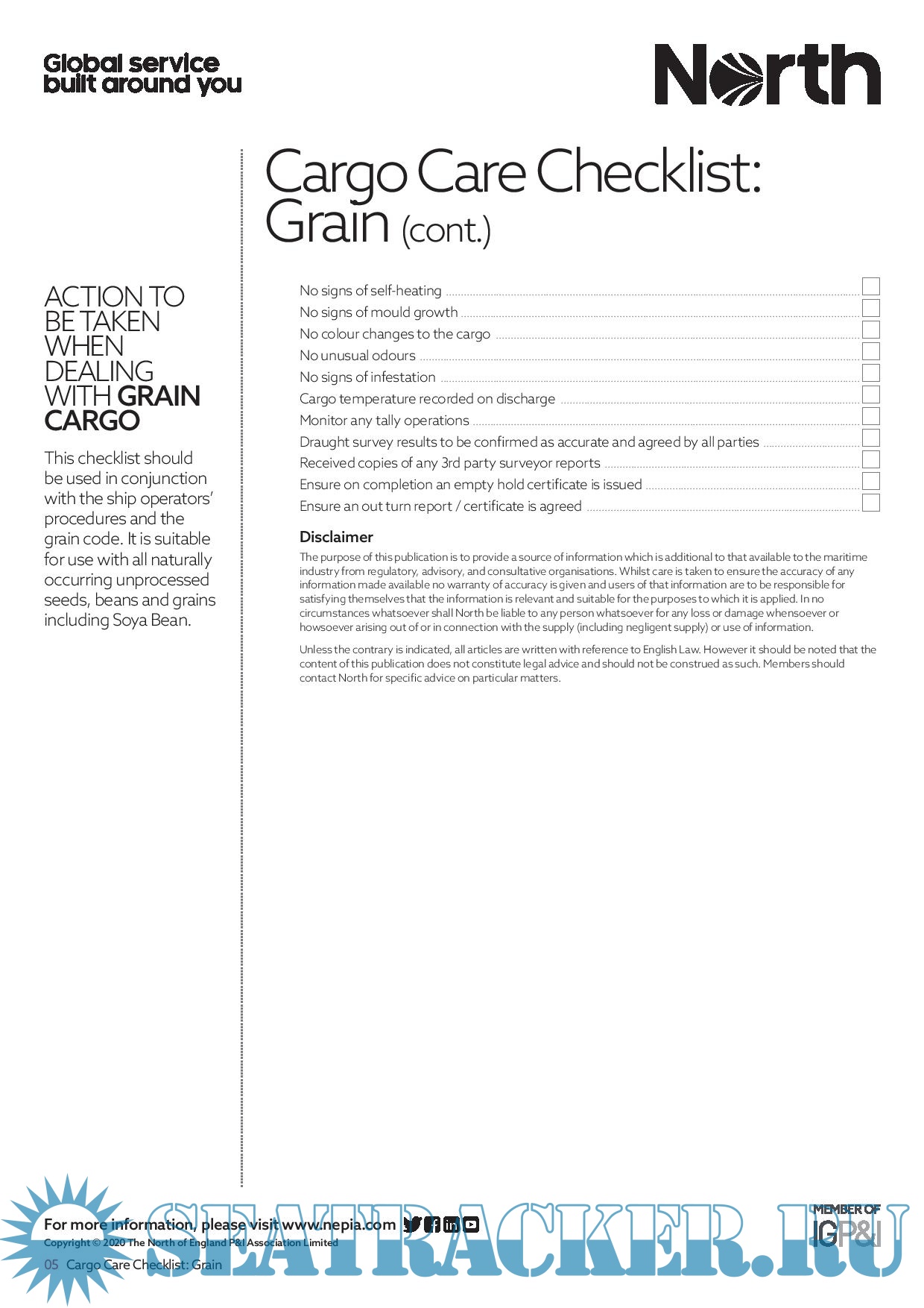 Cargo Care Checklist: Grain [updated] - NorthStandard [2024, PDF]