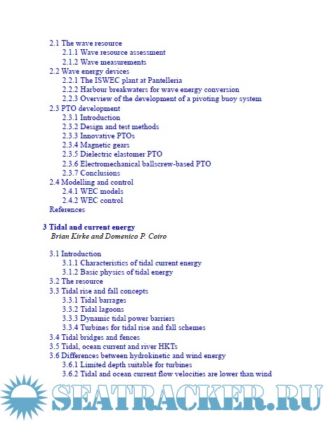 Description: There are many ways to harness the renewable and emissions-free energy available from the Earth's oceans. The technologies include wave energy, tidal and current energy, and energy from thermal and salinity gradients. In addition, offshore wind energy and marine (floating) solar arrays offer a possibility to exploit vast resources that are far larger than those available onshore. The potential capacities range from many hundreds of gigawatts to terawatts of generation. These technologies could contribute a significant part to the global electricity demand; they are particularly suitable for providing sustainable power to marine regions and island communities and nations.