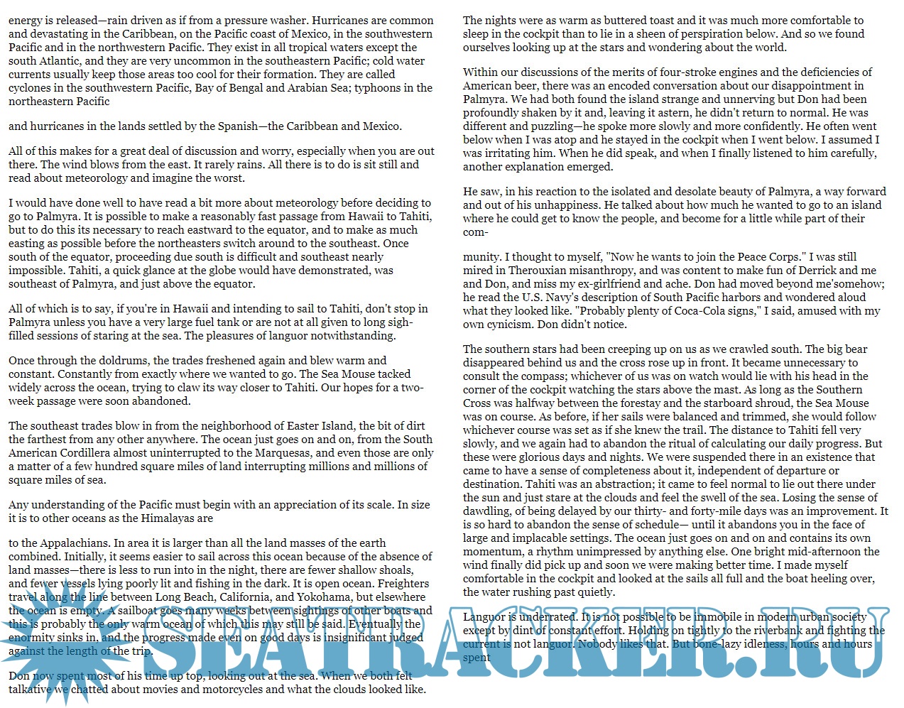 Description: A broken heart following a brief but painful love affair drove Patterson to the end of the pier--and onto a 20-year-old, 37-foot ferro-cement sailboat called the Sea Mouse. No, he didn't know how to sail. He'd never been at sea before. But he was convinced it would be easy to learn, and that he needed to be alone at sea. In the end, Patterson set sail with a stranger--another man trying to leave everything behind him, but one who knew how to sail--to journey from British Columbia to Tahiti.
