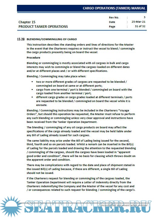 Description: The purpose of this manual is to guide the Master, Officers and crew to load, carry and unload cargoes in a safe and efficient manner. At every stage of the operation of the vessel due consideration must be given to all the rules and regulations of the Classification society, IMO, OCIMF, SOLAS and MARPOL requirements as well as must conform with the various codes and regulations with respect to cargo carriage.