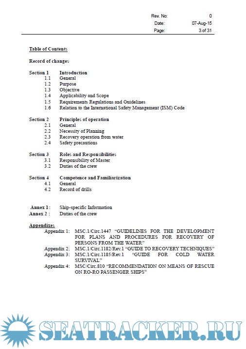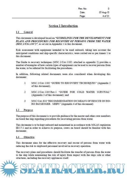Description: This document is developed based on“GUIDELINES FOR THE DEVELOPMENT OF PLANS AND PROCEDURES FOR RECOVERY OF PERSONS FROM THE WATER (MSC.1/Circ.1447)”.