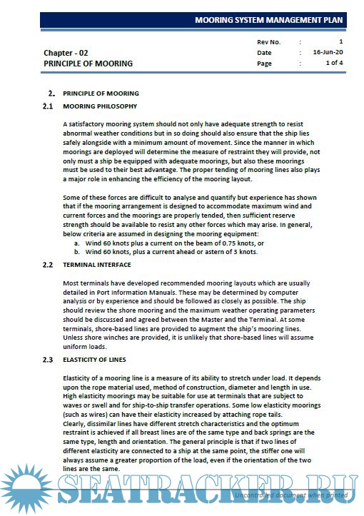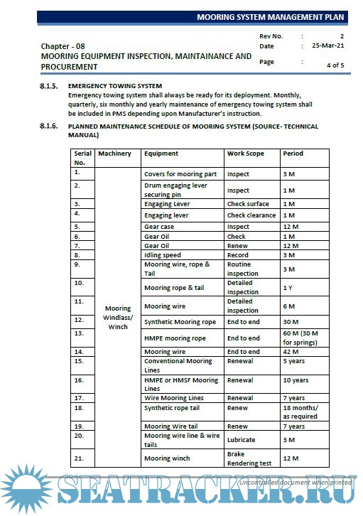 Year: 2021 Language: english Author: Synergy Maritime Pvt. Ltd. Genre: Manual Publisher: Synergy Maritime Pvt. Ltd. Edition: I Format: PDF Quality: eBook Pages count: 101 Description: The Mooring System Management Plan (MSMP) has been created to help operator ensure the mooring system is inspected, maintained and operated in accordance with the original design basis. It will contain information that can be available to anyone on the ship who needs to review it. The objective for the MSMP is to ensure that all assessed risks are effectively managed through the design and operation of the mooring system. Its aim is to ensure that during mooring operations, no harm comes to ship or terminal staff or damage to the ship or terminal/facility it is interfacing with and that the mooring system meets applicable regulations, codes and recommended practice. Ship operators and ship builders should collaborate from the earliest stage in the ship's design to ensure risks are reduced through mooring design and risk reviews. Collectively mooring system management plan will achieve the objective through establishing: Collectively mooring system management plan will achieve the objective through establishing: • Records of mooring equipment, including all permanent and loose items and its 'as built' design basis, to be retained by the ship throughout its lifecycle (the Mooring system management plan register - MSMPR). • Information required to be maintained as an up-to-date record of the ship's mooring equipment technical status. • Operating procedures and risk assessments that ensure the safety and occupational health and wellbeing of the ship's staff when using mooring equipment or operating in the mooring workspace.