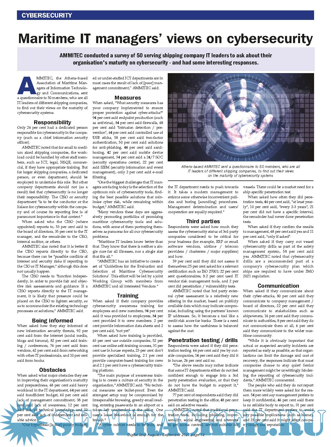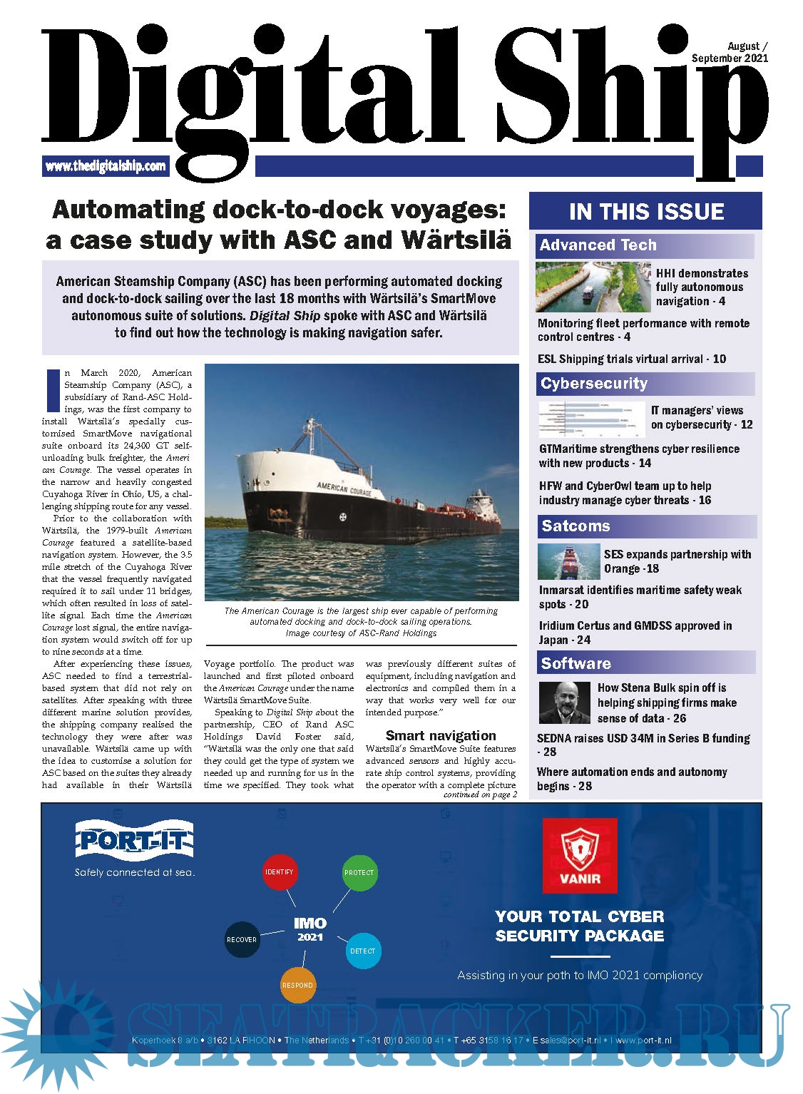 Year: 2021 Language: english Author: Digital Ship Ltd. Genre: Periodical (magazine) Format: PDF Quality: eBook Pages count: Multiple Description: Digital Ship magazine provides the latest information about maritime satellite communications technology, software systems, navigation technology, computer networks, data management and etc. Editions December, 2019 - September, 2021 .