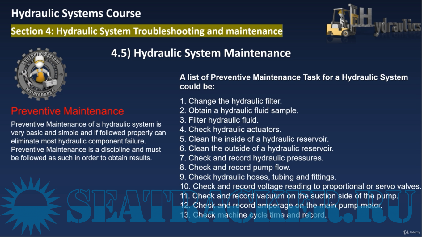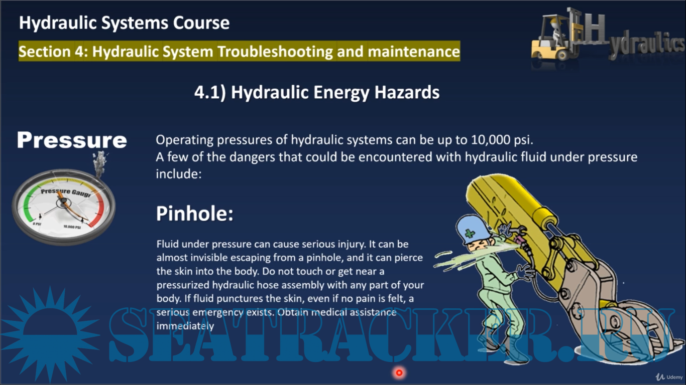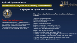 IV) Section 4 (Hydraulic System Troubleshooting and Maintenance) : This will be the last section in this course , and here you'll be able to understand Hydraulic energy hazards and how to deal safely with those Hazards , then we'll highlight on common contamination that are present in majority of any Hydraulic systems, after that we'll talk about Hydraulic system troubleshooting so you'll be able to identify problems observed in Hydraulic circuit by following certain steps and guidance and at the end we'll talk about basic maintenance activities that need to be carried out to avoid surprises in Hydraulic systems