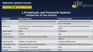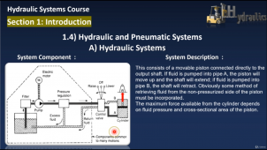 Description: This course introduces the basic fundamentals and functions of hydraulic systems. the course is composed of 4 sections covering various topics of hydraulic systems as follow :