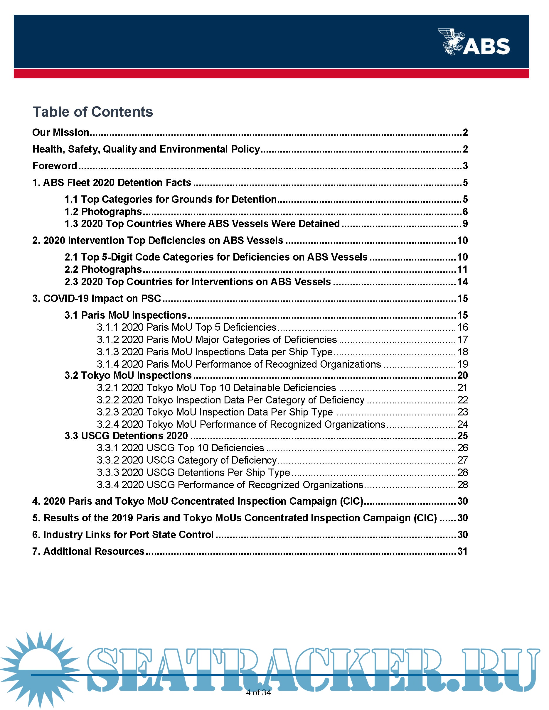 Description: This ABS Annual Report on Port State Control (PSC) provides information to owners on deficiencies identified on ABS vessels during inspections carried out by the various PSC regimes globally during the 2020 calendar year. This report is being made available to assist owners by providing awareness of potential areas of concern that have been identified on ABS classed vessels.